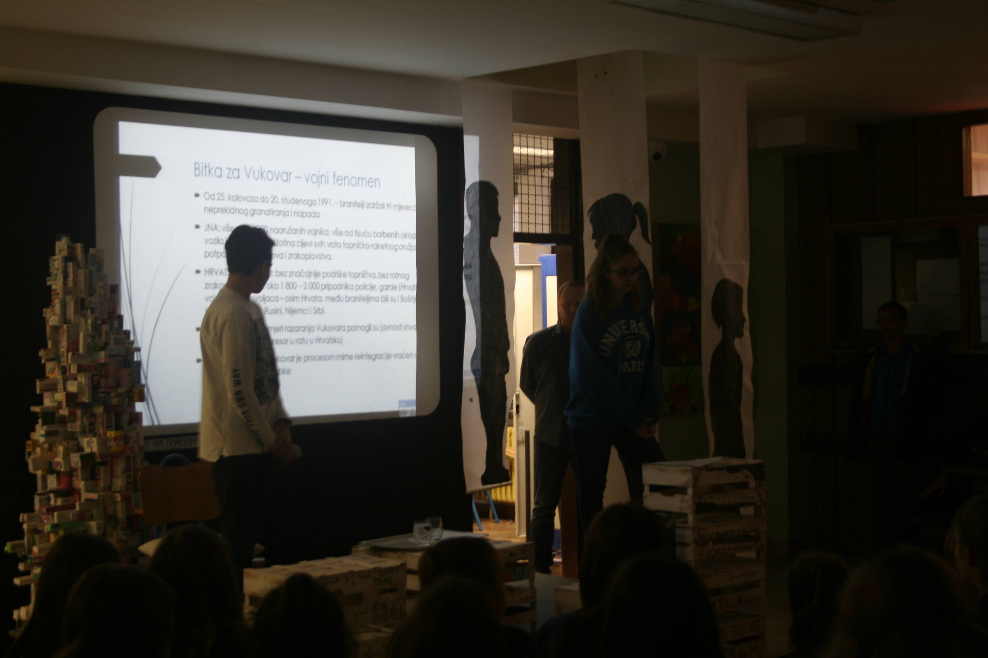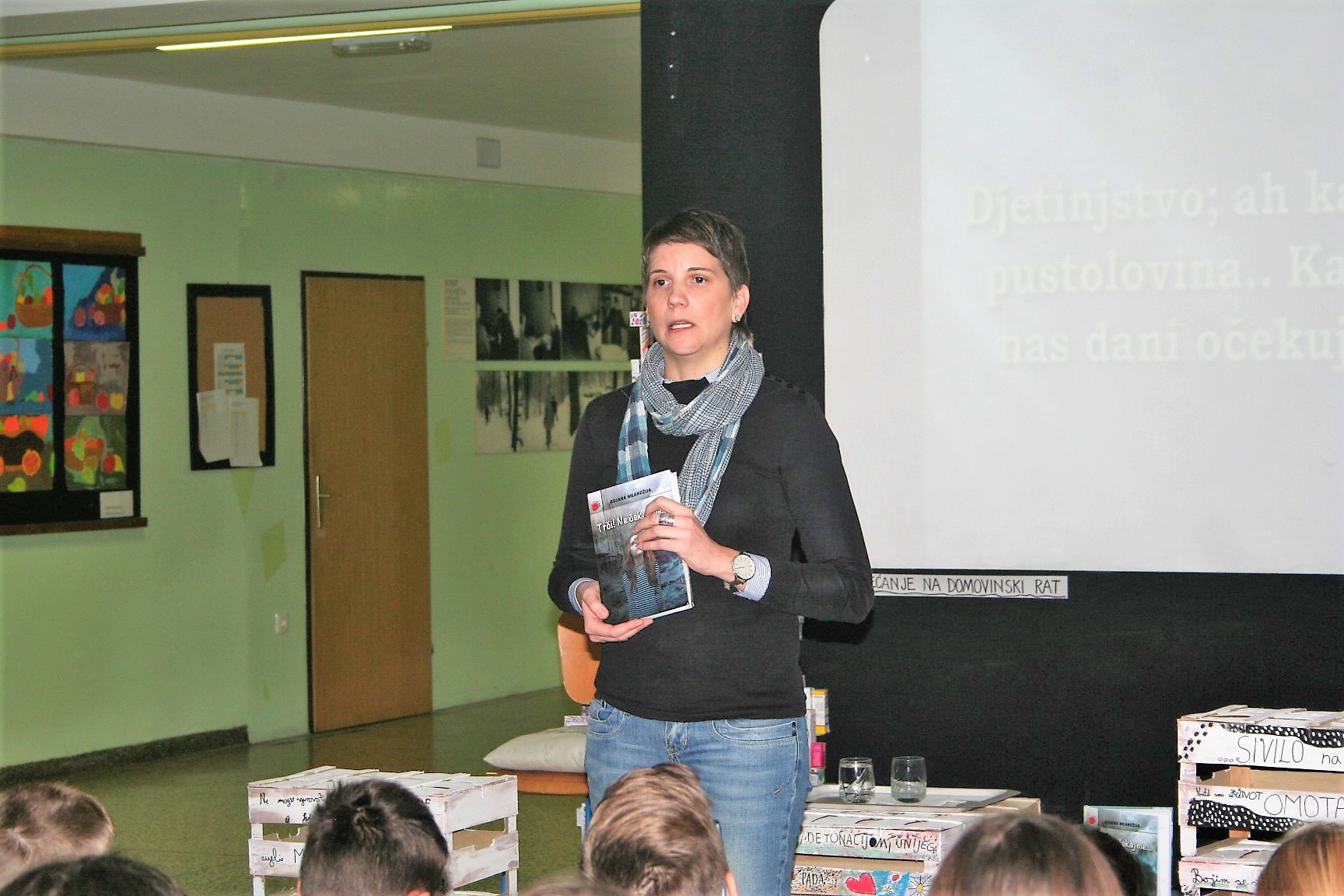 Učenici osmih razreda kratkom su nas prezentacijom proveli kroz najvažnije trenutke Domovinskoga rata, a kao posebna gošća posjetila nas je spisateljica Bojana Meandžija. Autorica je govorila o osobnim iskustvima iz rata koja je pretočila u svoj roman Trči! Ne čekaj me... U svom pripovijedanju bila je iznimno uvjerljiva, a publika ju je slušala bez daha. Njezin dolazak iskoristili smo i za kratak intervju.