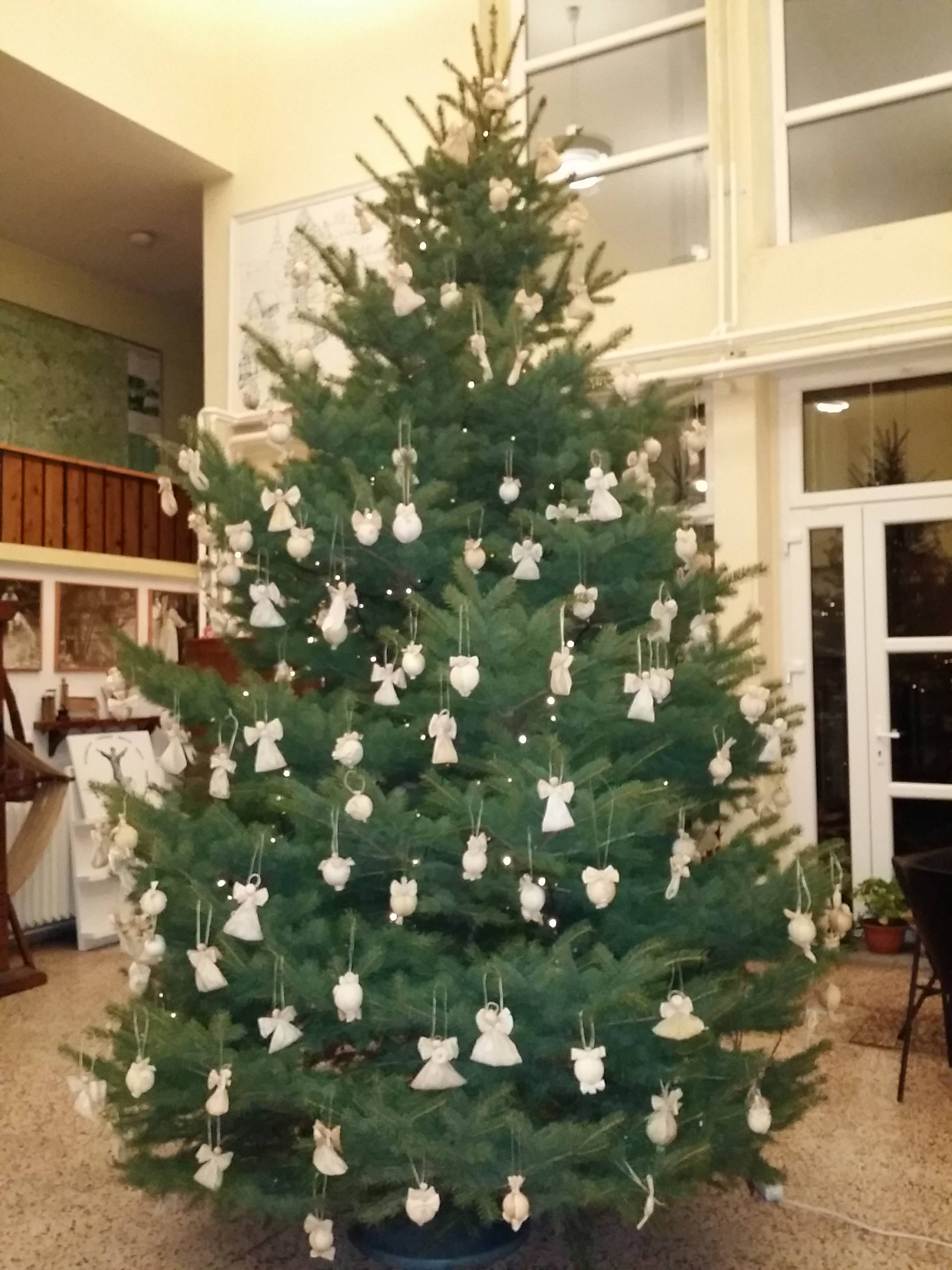 Zahvaljujući obitelji Pasanec ove godine naša škola ima najljepšu ikad postavljenu božićnu jelku u školskom predvorju, mišljenje je svih koji su je vidjeli. Ljepotu te pre savršene srebrne jele teško je prenijeti na fotografiju. Zato se već dva tjedna oko nje okupljaju radoznali učenici koji su je i okitili ukrasima od perusine koje su sami izradili uz pomoć svojih učiteljica.
