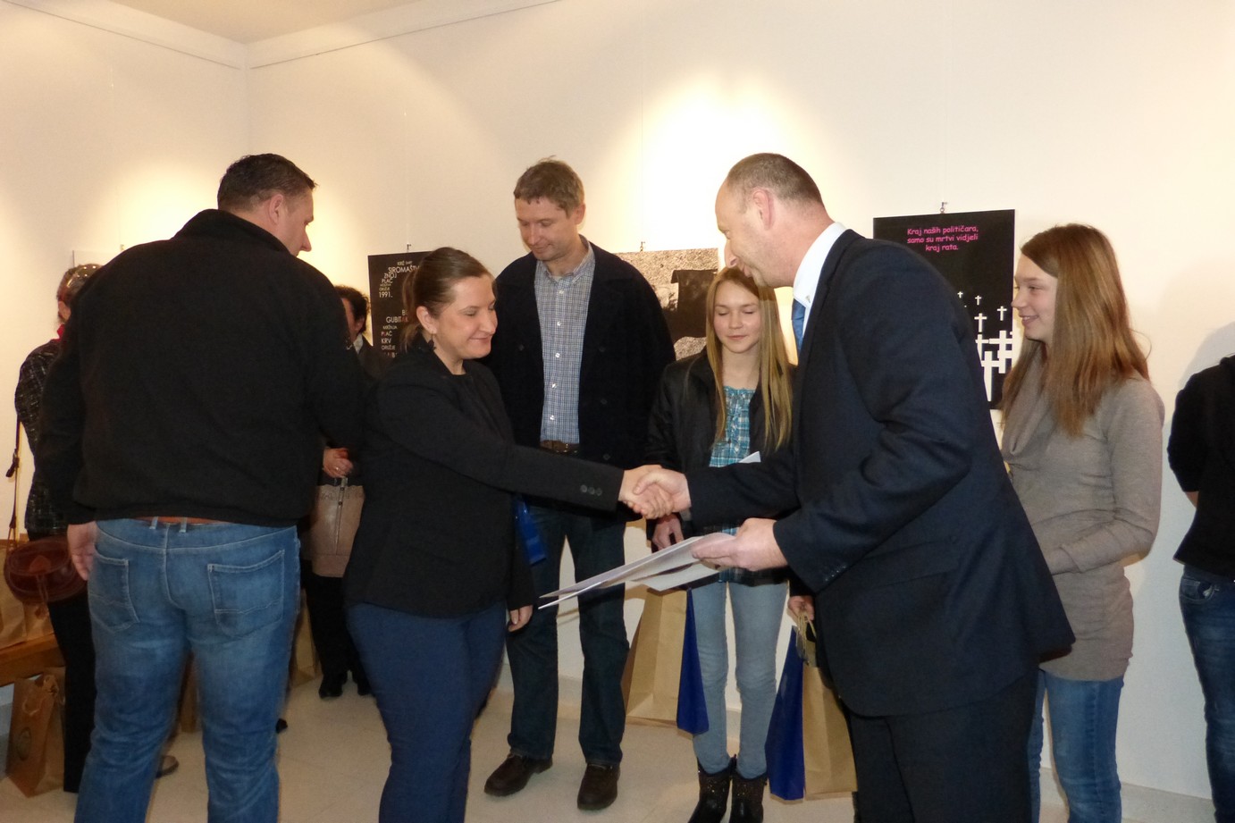 Ministar branitelja Predrag Matić i župan Krapinsko-zagorske županije Željko Kolar prisustvovali su u petak, 20. veljače 2015. godine u Gradskoj knjižnici u Zaboku otvorenju izložbe likovnih i literarnih radova nastalih u sklopu projekta "Promicanje istine o Domovinskom ratu".