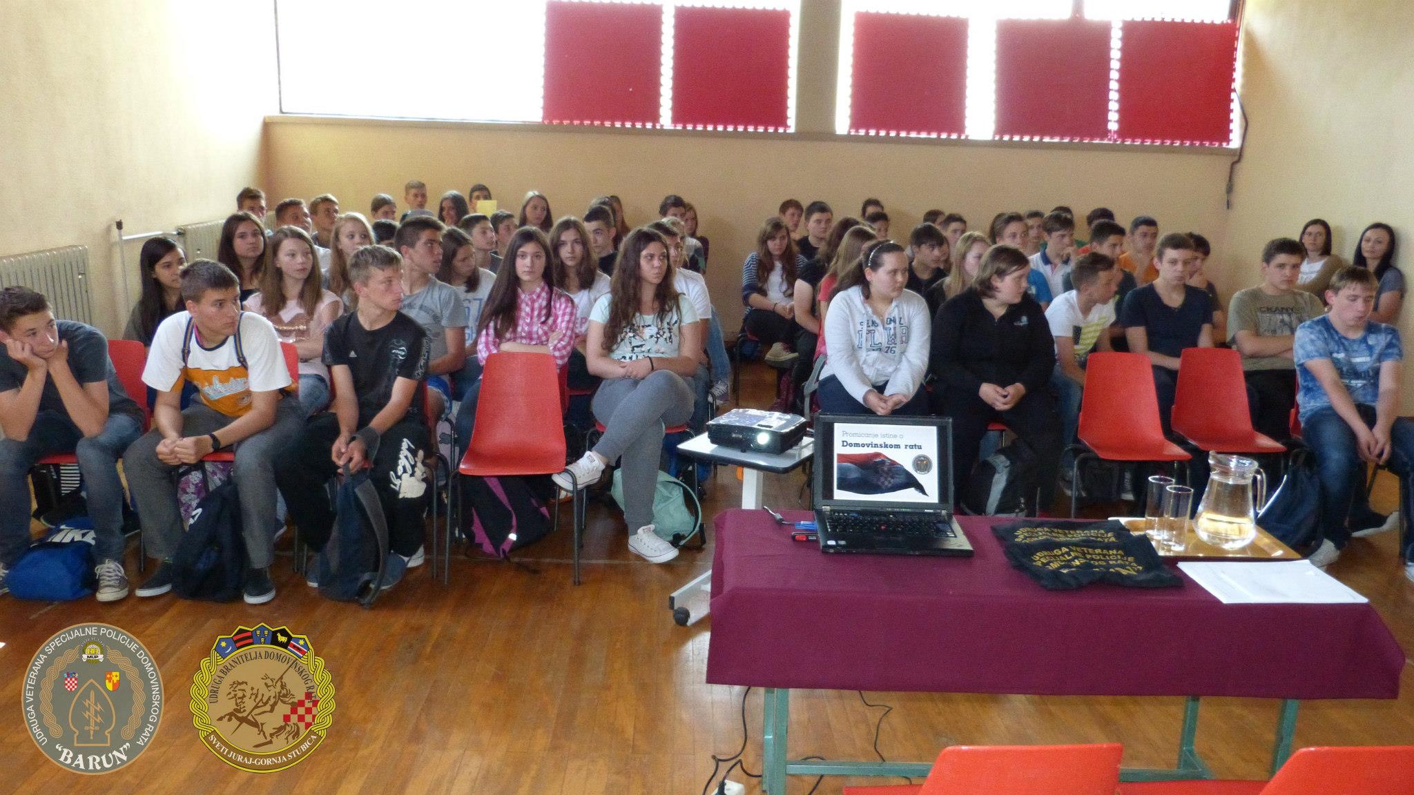 U utorak, 19.5., u prostorijama matične škole imali smo čast ugostiti predstavnike Udruge veterana specijalne policije Domovinskog rata “Barun” i Udruge branitelja Domovinskog rata “Sveti Juraj”. Gosti su za učenike osmih razreda održali edukativno i zanimljivo interaktivno predavanje pod nazivom “Promicanje istine o Domovinskom ratu”.