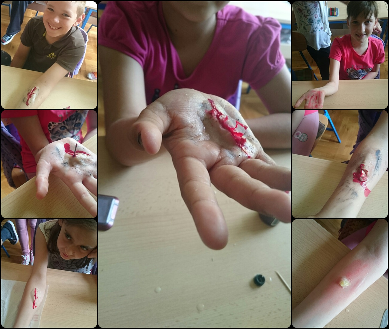 Iako u prvi tren iznenađeni, učenici su nestrpljivo čekali "zadobivanje" svoje ozljede.