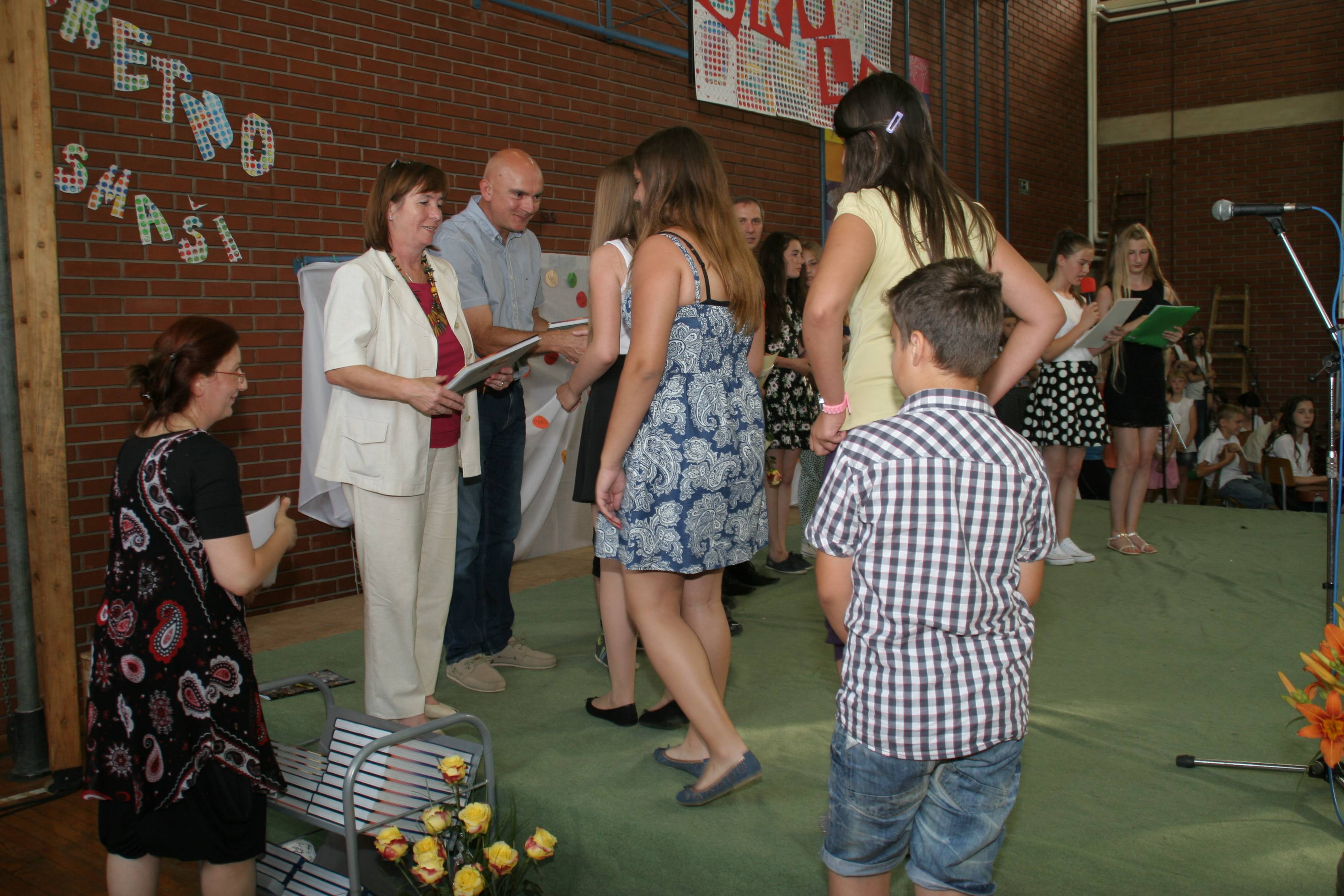 Učenicima koji su svih osam godina završili s odličnim uspjehom, te učenicima koji su predstavlili školu na državnim i županijskim natjecanjima podijeljene su nagrade koje je osigurala Općina Gornja Stubica, a njihovim mentorima podijeljena su priznanja. Nagrade su uručili ravnateljica OŠ Matije Gupca Gornja Stubica Sanja Knezić te načelnik Općine Gornja Stubica Jasmin Krizmanić koji su se okupljenima obratili i prigodnim govorom. Priredbi su nazočili zamjenik načelnika Općine Gornja Stubica Vladimir Škvorc, ravnatelj OŠ Ivan fra Frano Jukić iz Usore (Bosna i Hercegovina), predstavnici OŠ "Matija Gubec" iz Tavankuta (Vojvodina, Srbija), djeca i učitelji OŠ Matije Gupca, umirovljeni učitelji, roditelji i mještani.