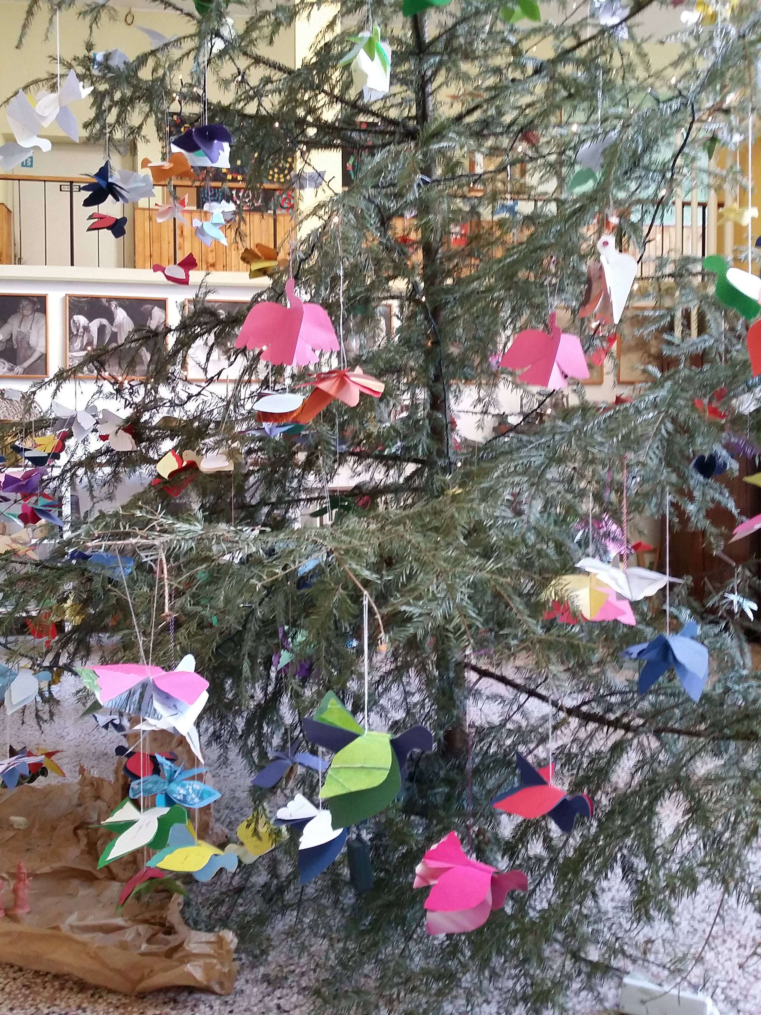 Ove godine veliku smreku smo dobili od Hrvatskih šuma, a učenici su izradili nakit - golubice sa ispisanim porukama i lijepim željama.