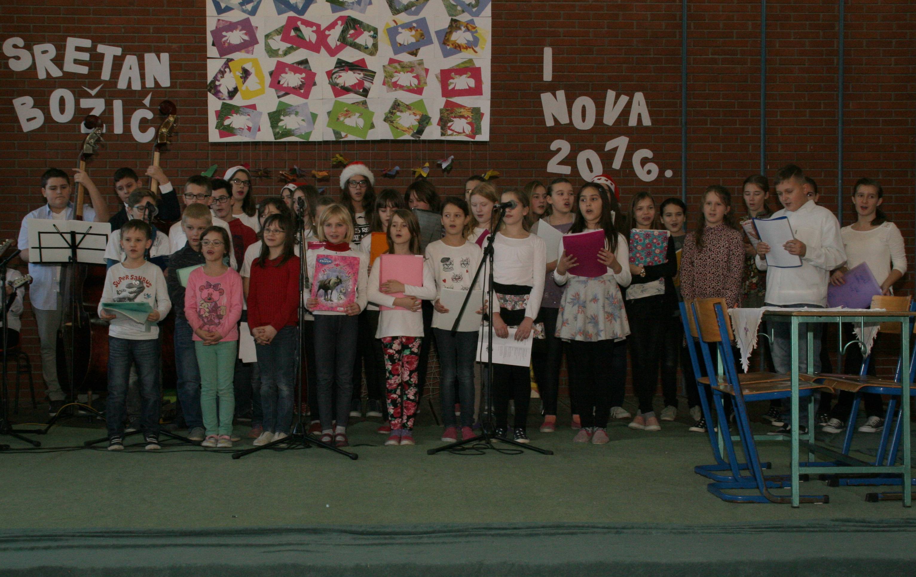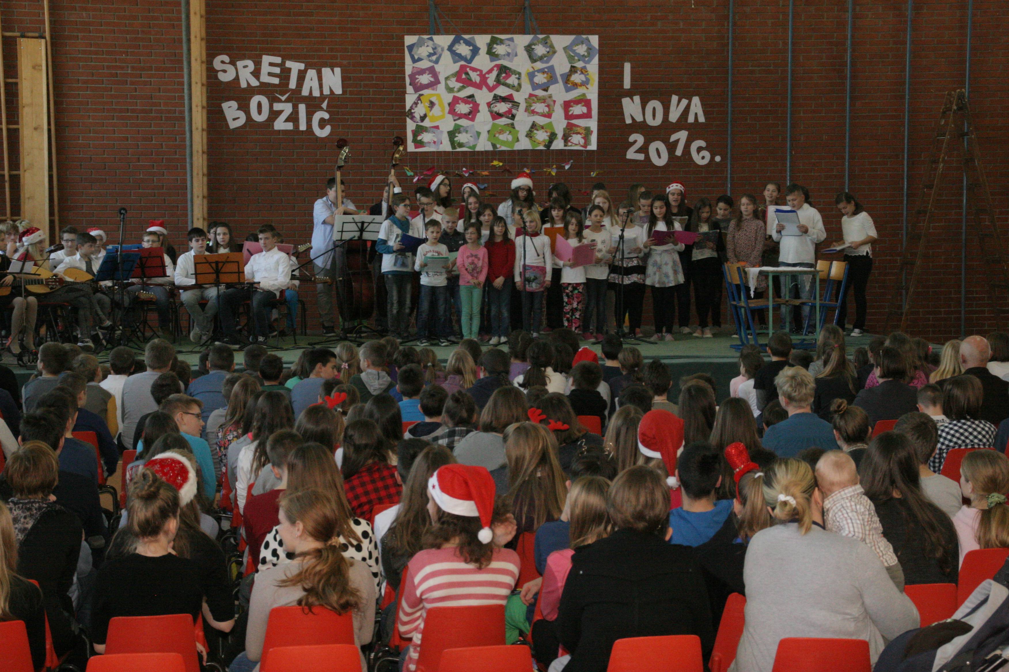 Zadnjeg dana nastave u 1. polugodištu, u srijedu, 23. prosinca 2015. godine u školskoj sportskoj dvorani održana je školska priredba povodom božićnih i novogodišnjih blagdana.
