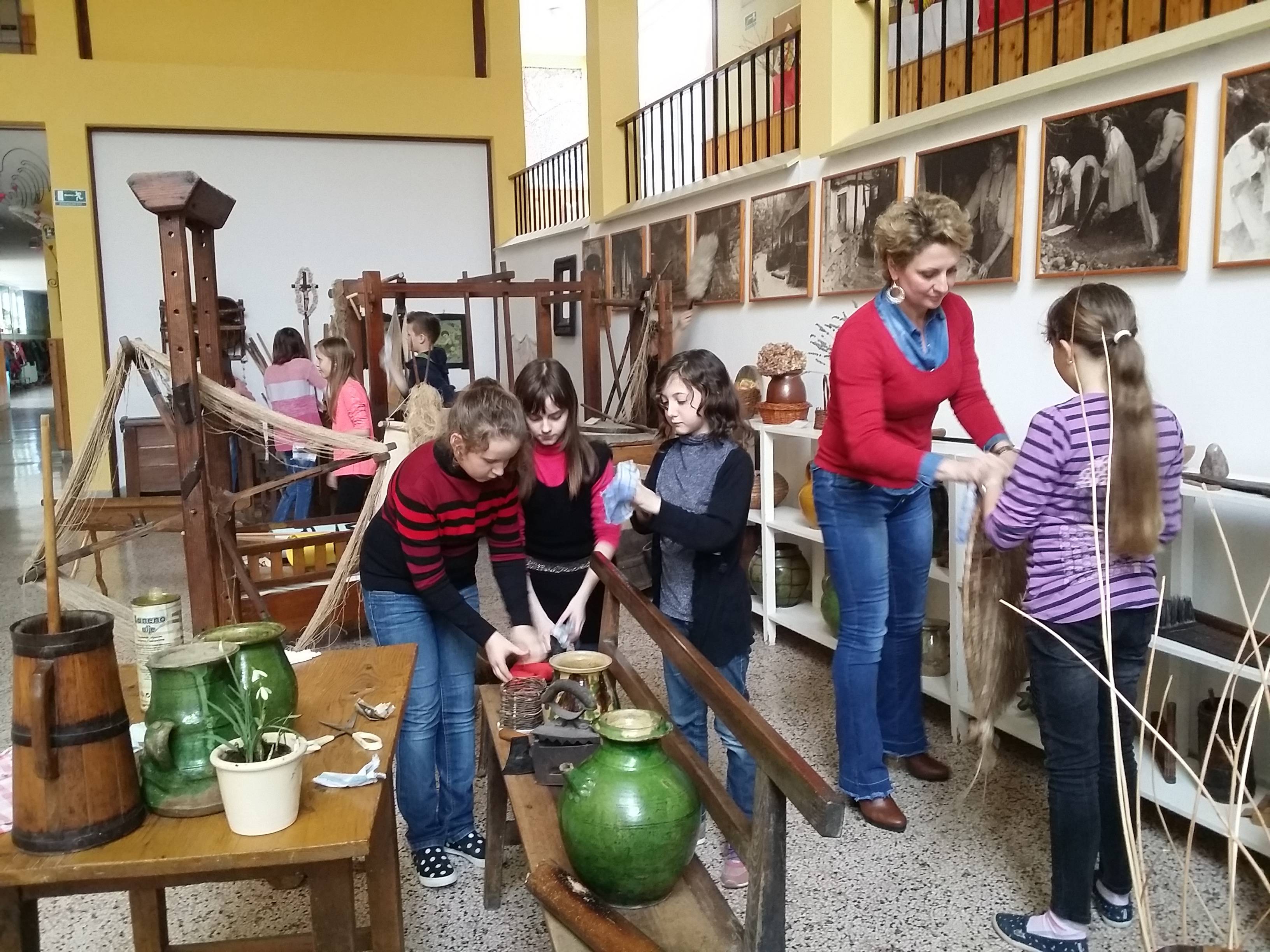 U predvorju škole postavljena je etnografska zbirka s oko 150 izloženih predmeta i plijeni pažnju naših gostiju. S dolaskom ljepšeg vremena treba je malo bolje očistiti. Brigu o zbirci vodi etnografsko-folklorna grupa. „Ulovili“ smo ih u brisanju prašine.