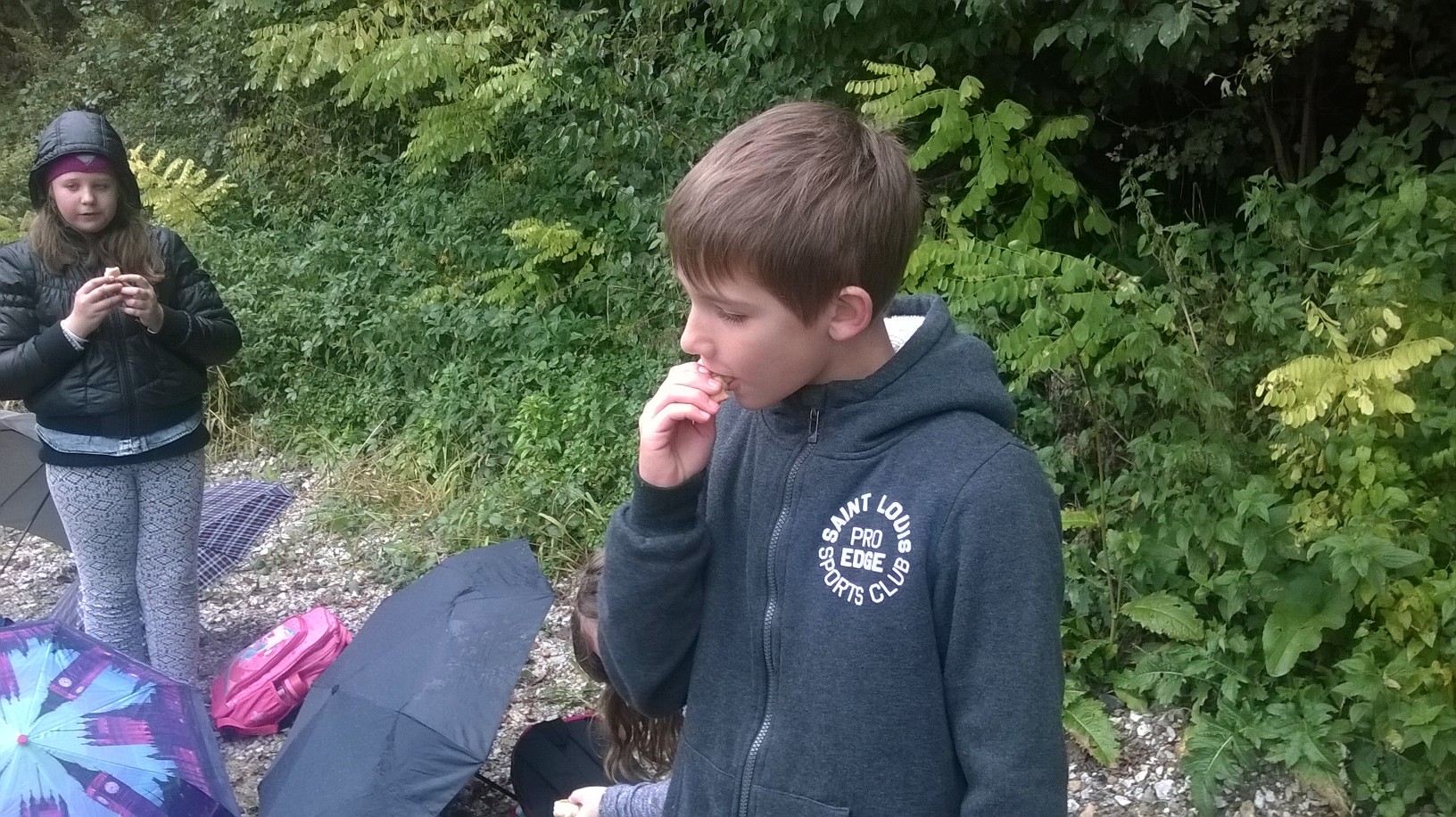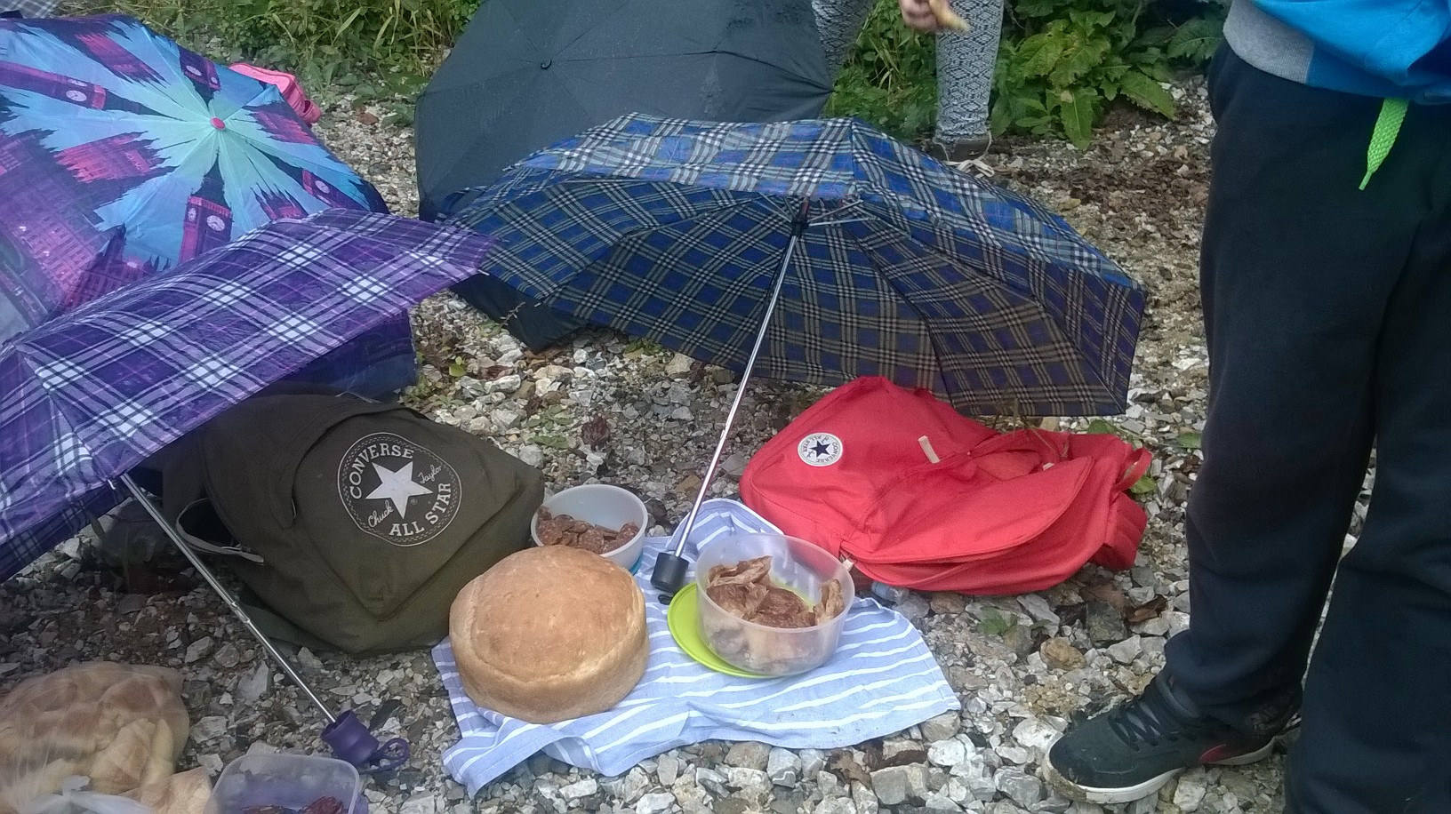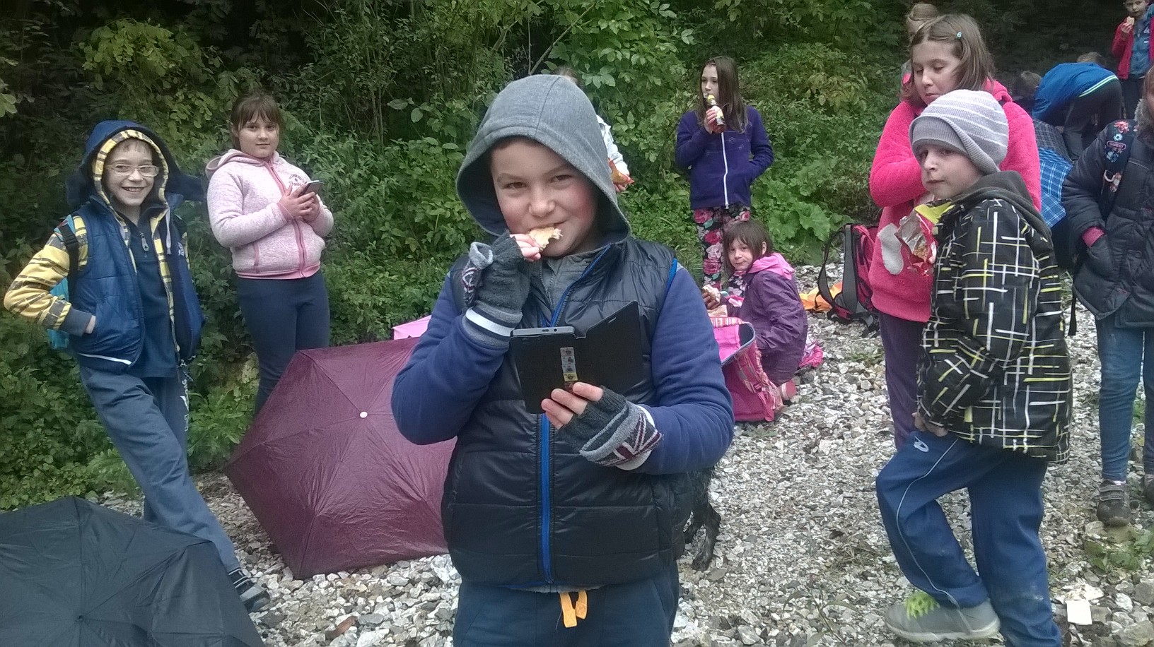 Blagovali smo blagoslovljenu hranu pod kišobranima, a tračak sunca pokrenuo je i nepresušnu dječju energiju za igrom.