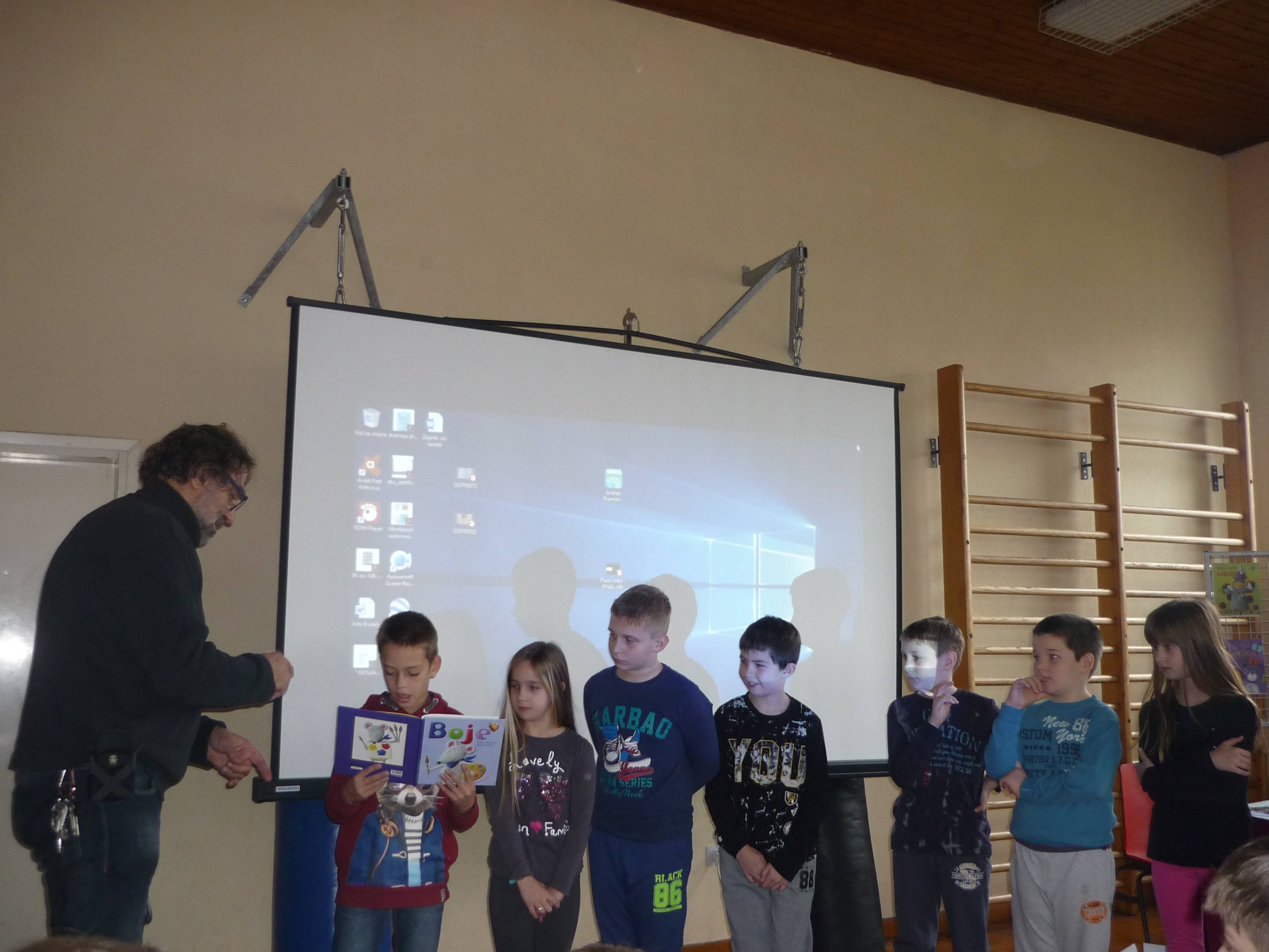 U petak 16.12.2016. našu su školu posjetili ilustratorica Andrea Petrlik Huseinović i pisac Kašmir Huseinović. Za razgovor s njima bili su spremni učenici nižih razreda matične škole.