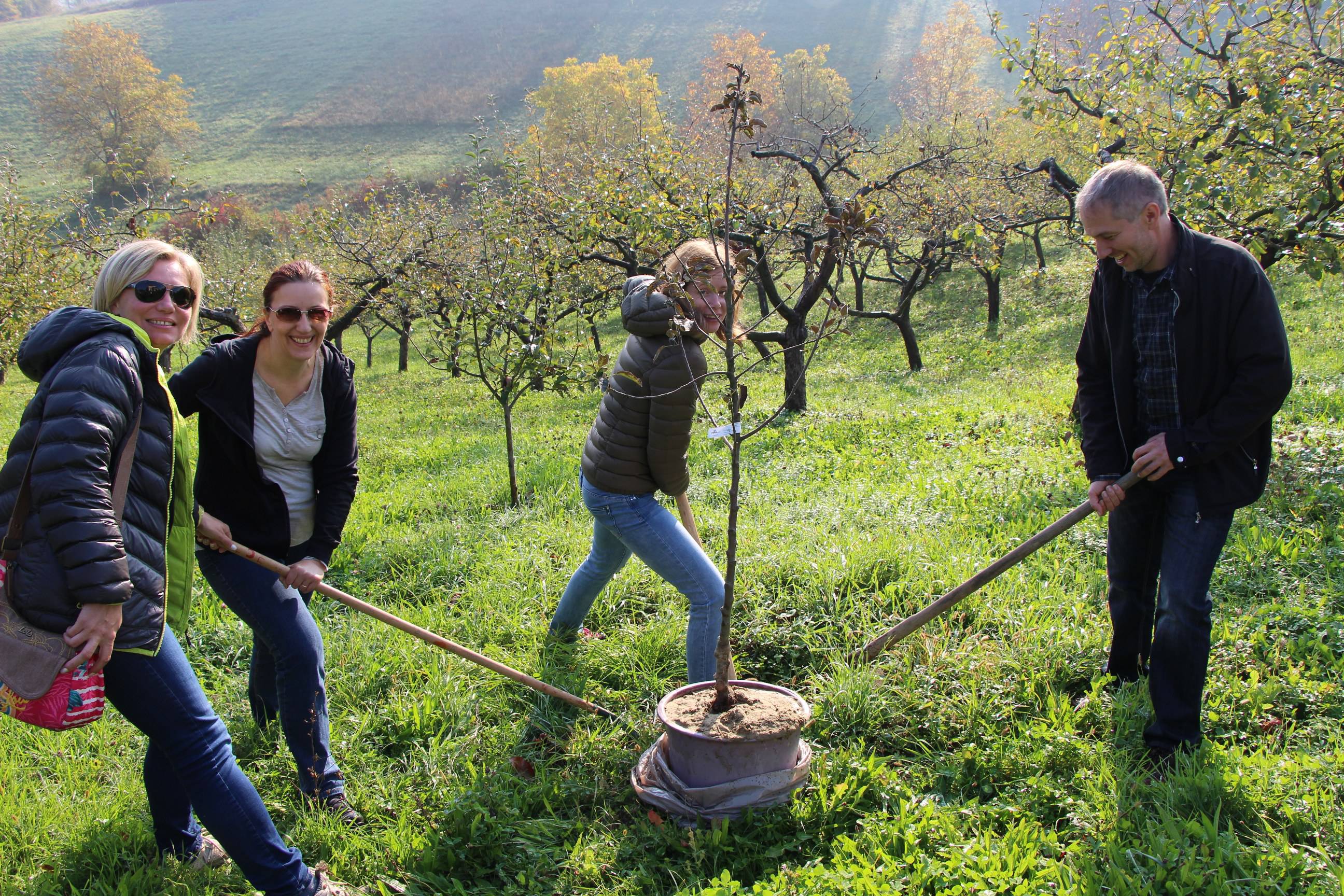 Gosti iz Slovenije željeli su se prvenstveno upoznati s radom naše školske zadruge za koju su čuli prilikom prošlogodišnjeg gostovanja u okviru projekta Putujem s knjigom/Potujem s knjigo kada su naše učenice predstavljale svoju školu. Sretno se poklopila činjenica da su se naši zadrugari upravo vratili s državne smotre školskih zadruga koja je bila održana u Zadru te su nam odmah prikazali kako je tamo izgledao njihov štand. U petak ujutro, nakon blagoslova kruha i molitve koju je predvodio naš velečasni Nikola Jurković, učenici domaćini su se sa svojim prijateljima uputili u razgled školskog voćnjaka i podruma, ali gosti nam nisu došli praznih ruku. Donijeli su sadnicu jabuke sorte bobovac koja je odmah našla svoje mjesto u našem školskom voćnjaku, a stara izreka kaže: „Tko posadi drvo, misli na budućnost.“ Složili smo se da imamo još puno ideja kojima možemo nastaviti našu suradnju, tako da budućnost nije upitna.