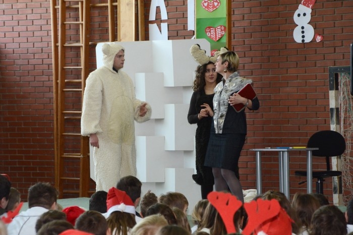 Javili su nam se neki dobri ljudi koji su darujući sredstava za gostovanje profesionalne kazališne skupine željeli razveseliti učenike naše škole. Tako su u našu školu došli glumci Teatra Tirena i izveli predstavu Božićne nevolje. Kako su Medo i Sobica, pomoćnici Djeda Božićnjaka, riješili probleme koji su nastali otkako je Djedica zaposlio Superorganiziranu poslovnu tajnicu - vidjeli smo u predstavi. Nakon predstave racitacijama su se predstavili učenici PŠ Sveti Matej koji trenutno borave u matičnoj školi - dok se zgrada njihove škole ne obnovi i uredi. Za kraj školski zbor i temburaši pripremili su nekoliko božićnih skladbi, a ravnateljica Sanja Knezić svima nam je zaželjela sretan Božić i svako dobro u novoj 2018. godini.