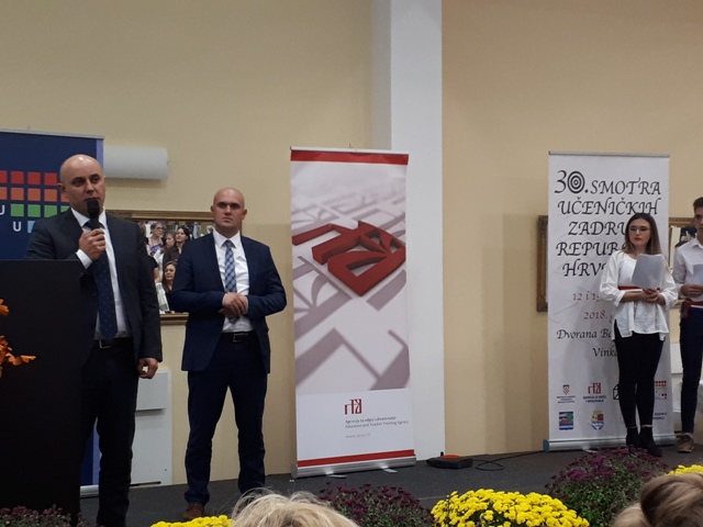 Nakon dolaska i smještaja u hotel, svi zajedno smo krenuli prema dvorani Barun Trenk gdje je slijedilo slaganje i uređivanje izložbenih prostora. Drugog dana, 12. listopada 2018. godine je bilo službeno otvorenje 30. smotre na kojem su sve prisutne pozdravili Zdenka Čukelj iz Ministarstva znanosti i obrazovanja, Vladimira Brezak iz Agencije za odgoj i obrazovanje, Marica Berdik, predsjednica Hrvatske udruge učeničkog zadrugarstva, zamjenik župana Vukovarsko-srijemske županije, gradonačelnik Vinkovaca te ravnatelj i ravnateljica škola domaćina. Smotru su otvorili učenici kratkom priredbom.