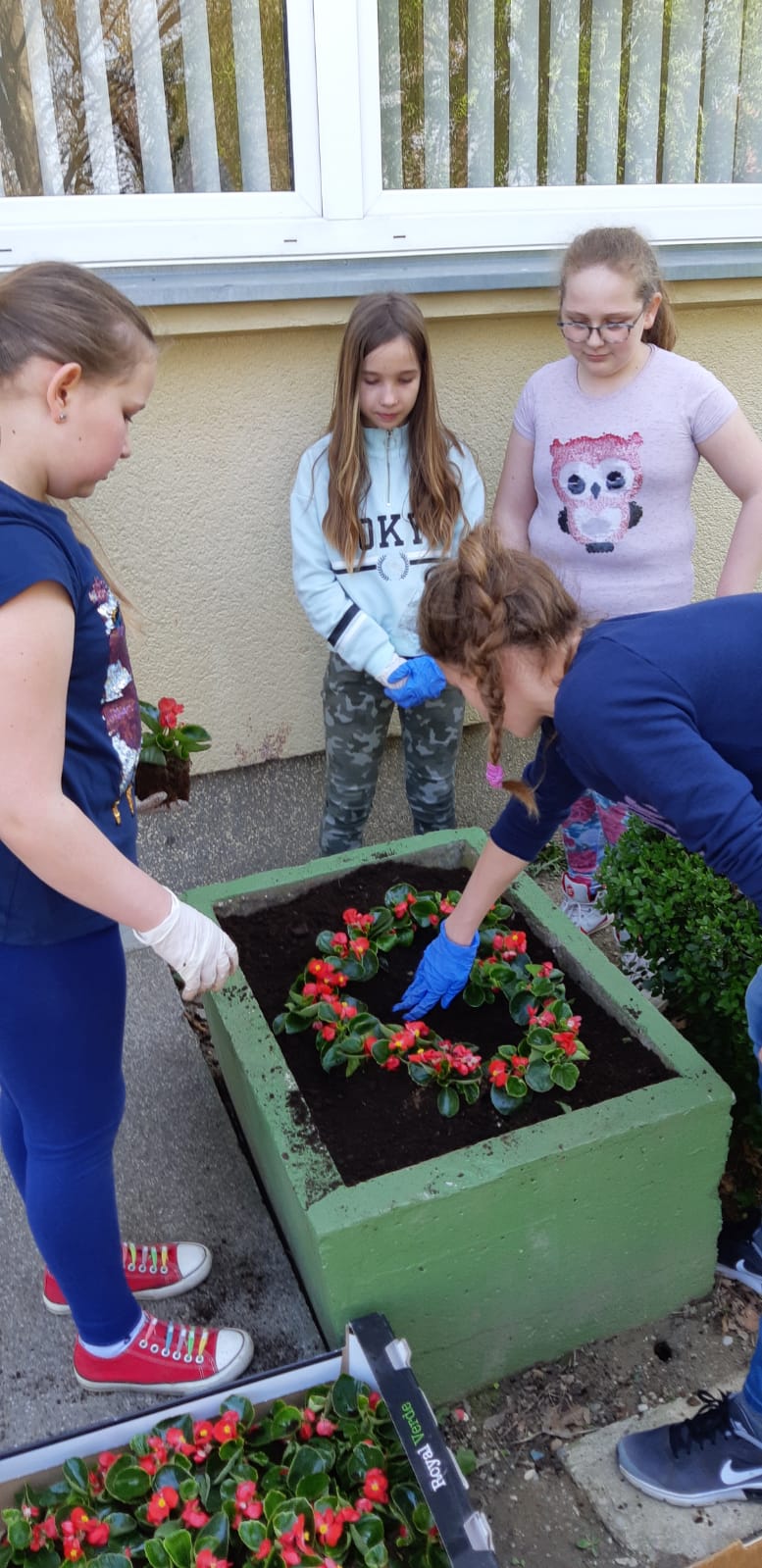 U srijedu, 17. travnja 2019. provedena je akcija sadnje cvijeća u školskom dvorištu.