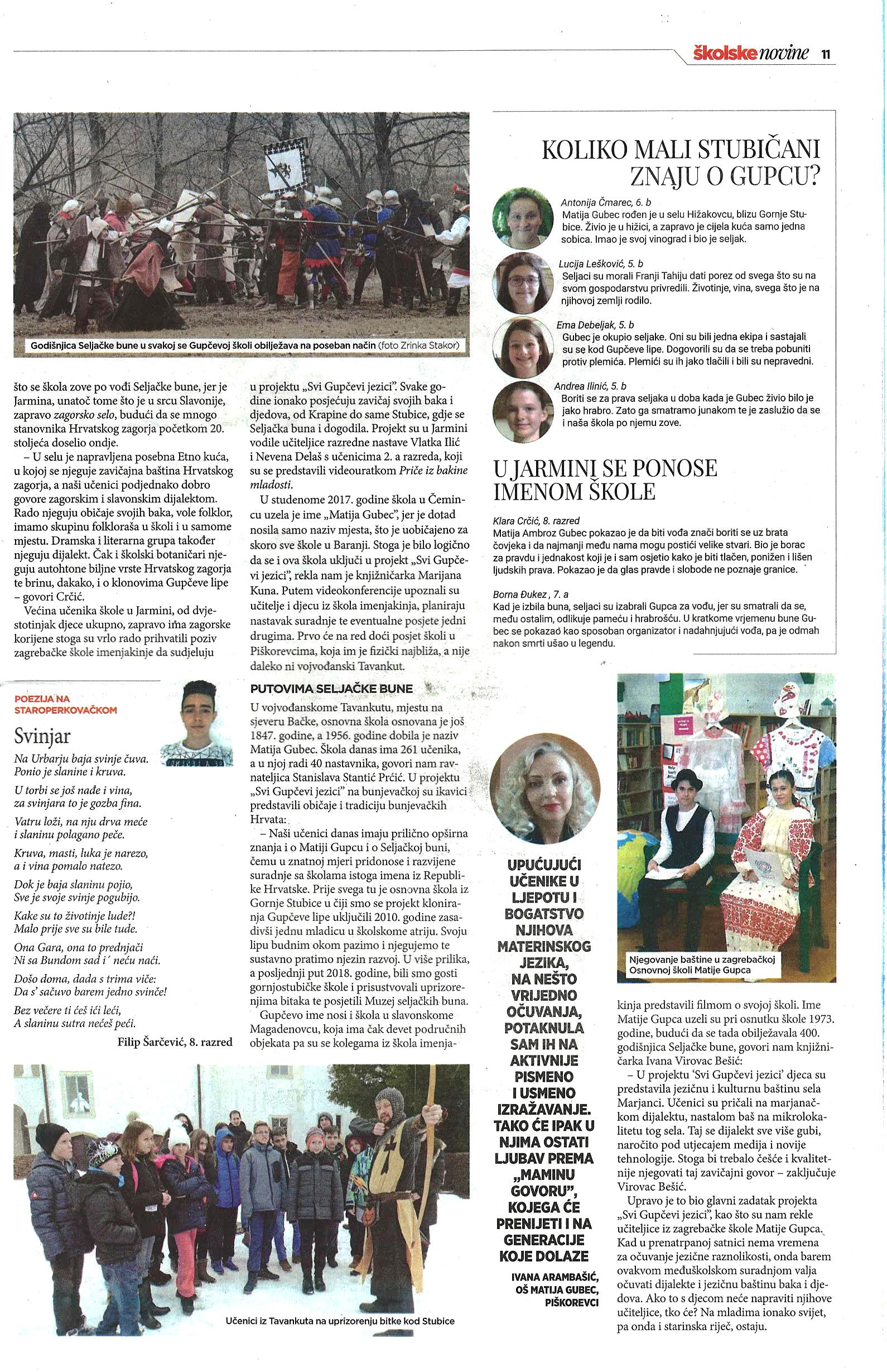Prenosimo članak objavljen u Školskim novinama iz kojeg se može saznati još detalja o projektu "Svi Gupčevi jezici" u kojem je sudjelovala i naša škole.
