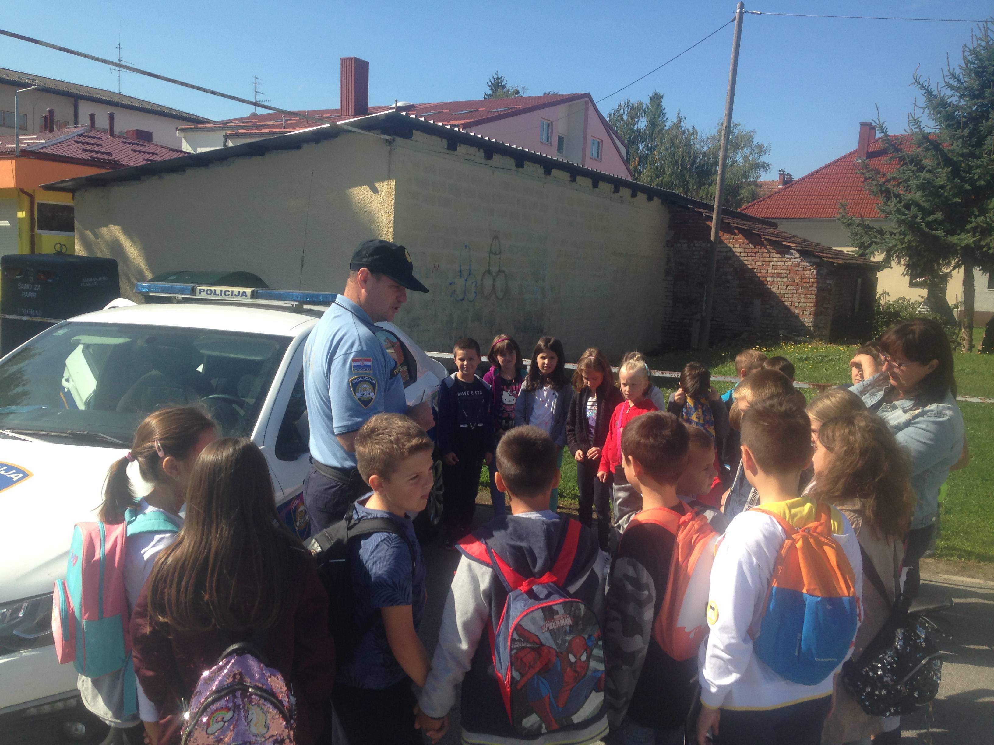 Prvo radno mjesto bilo je susret s policijskim službenikom za sigurnost cestovnog prometa i prevenciju, g. Vanjom Carek iz PP Donja Stubica koji je učenicima objasnio važnost poštivanja prometnih znakova te predstavio službeno policijsko vozilo u koje su učenici mogli sjesti te vidjeti na koji način je opremljeno i kako funkcionira.
