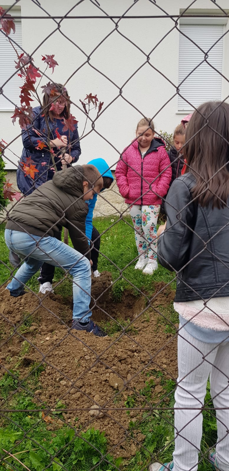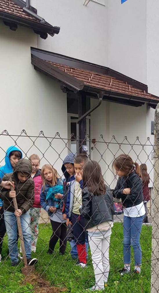 Veselje i osmijeh na licima te borba za kopanjem jame pomogli su sadnici da vrlo brzo zauzme ponosno mjesto u školskom dvorištu te nastavi rasti i biti na ponos i ljepotu ne samo školskom dvorištu, već i đacima te svim mještanima i prolaznicima.