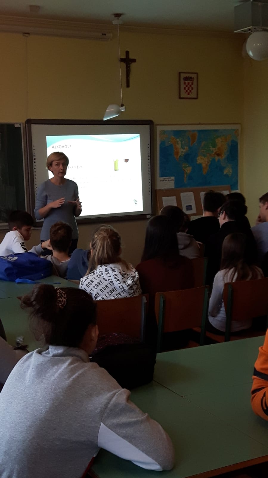 U ponedjeljak, 16.12.2019., učenici 8.a i 8.b razreda prisustvovali su predavanju koje je održala policijska službenica za prevenciju Policijske uprave Krapinsko zagorske, gđa. Andreja Jurić. Tema predavanja bila je Ovisnost i zlouporaba alkohola.