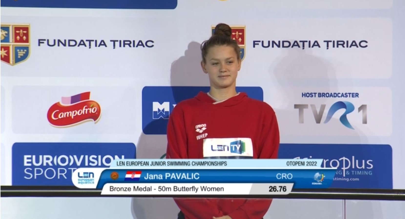 Jana Pavalić je opet bila izvrsna: u disciplini 50m leptir osvojila je broncu s vremenom 26.76 (26.60 u kvalifikacijama, 26.50 u polufinalu). Osim medalje Jana je isplivala novi apsolutni rekord Hrvatske u disciplini 100m slobodno s vremenom 56.09. Jana je s Mijom sudjelovala i u ženskoj štafeti u disciplini 4×100 slobodno (Jana Pavalić, Lucijana Lukšić, Matea Iveković, Mia Hren) koja je zauzela 6. mjesto s vremenom 3:49.56.