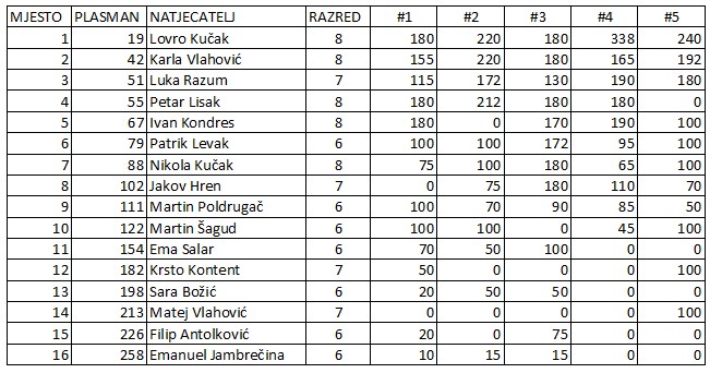 Ove godine se uključilo ukupno 16 učenika od 6. do 8. razreda. Donosimo vam njihove rezultate na državnoj razini i unutar škole.