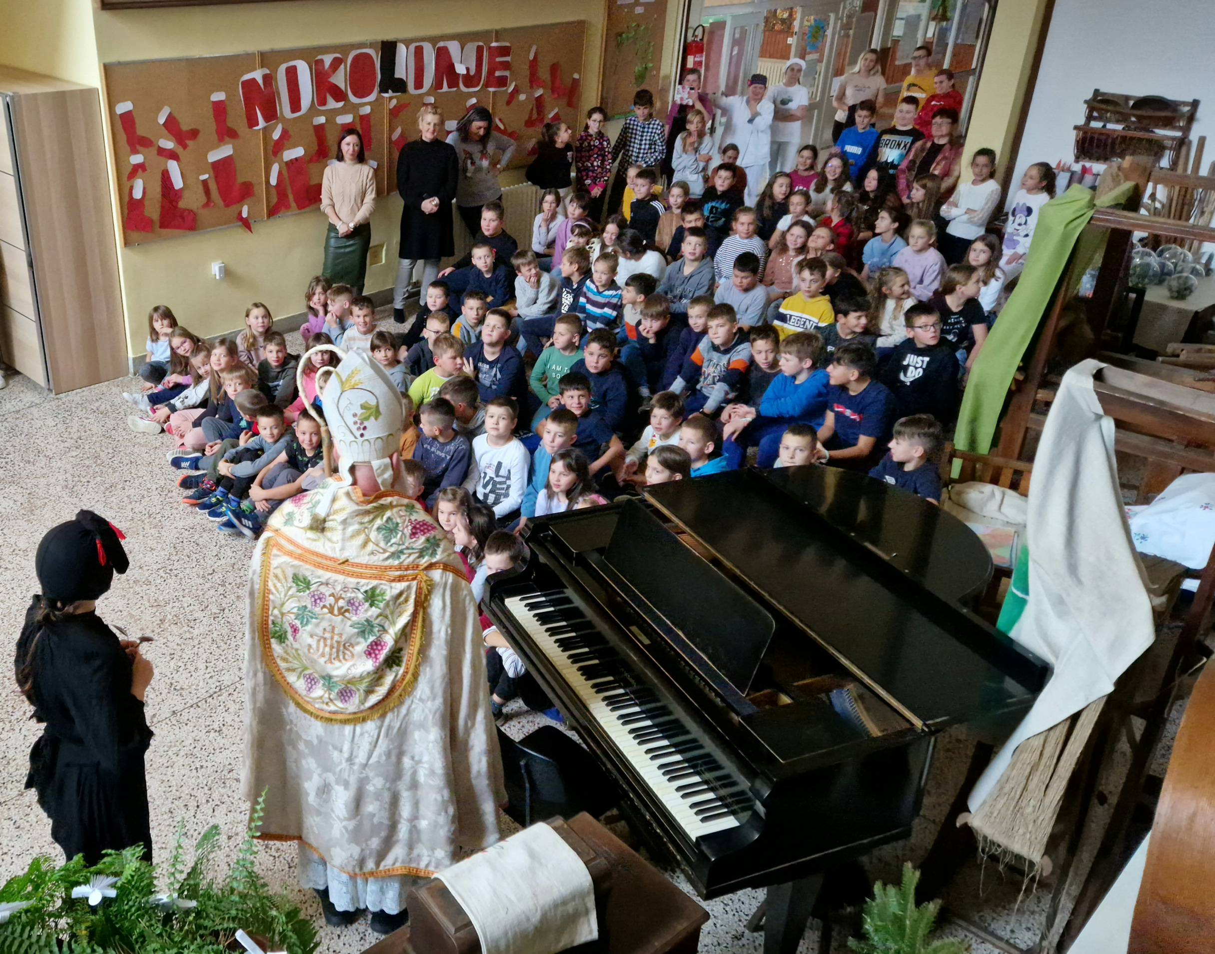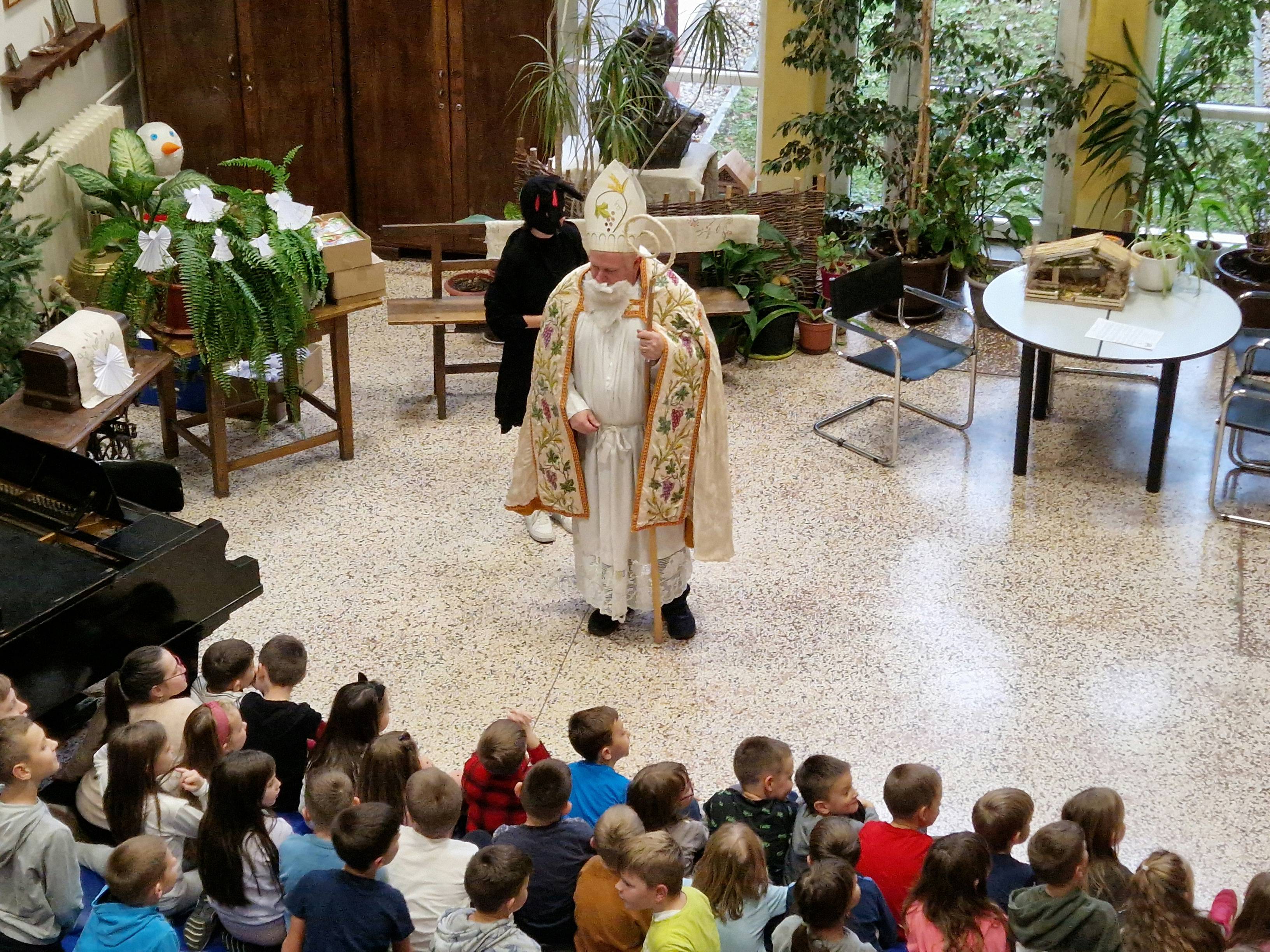 Kao i svake godine i ove je godine sveti Nikola posjetio našu školu. U srijedu, 6.12.2023. godine, 4. školski sat u predvorju škole bila je prigodna priredba za učenike nižih razreda, sveti Nikola je svim učenicima nižih razreda podijelio slatke pakete.