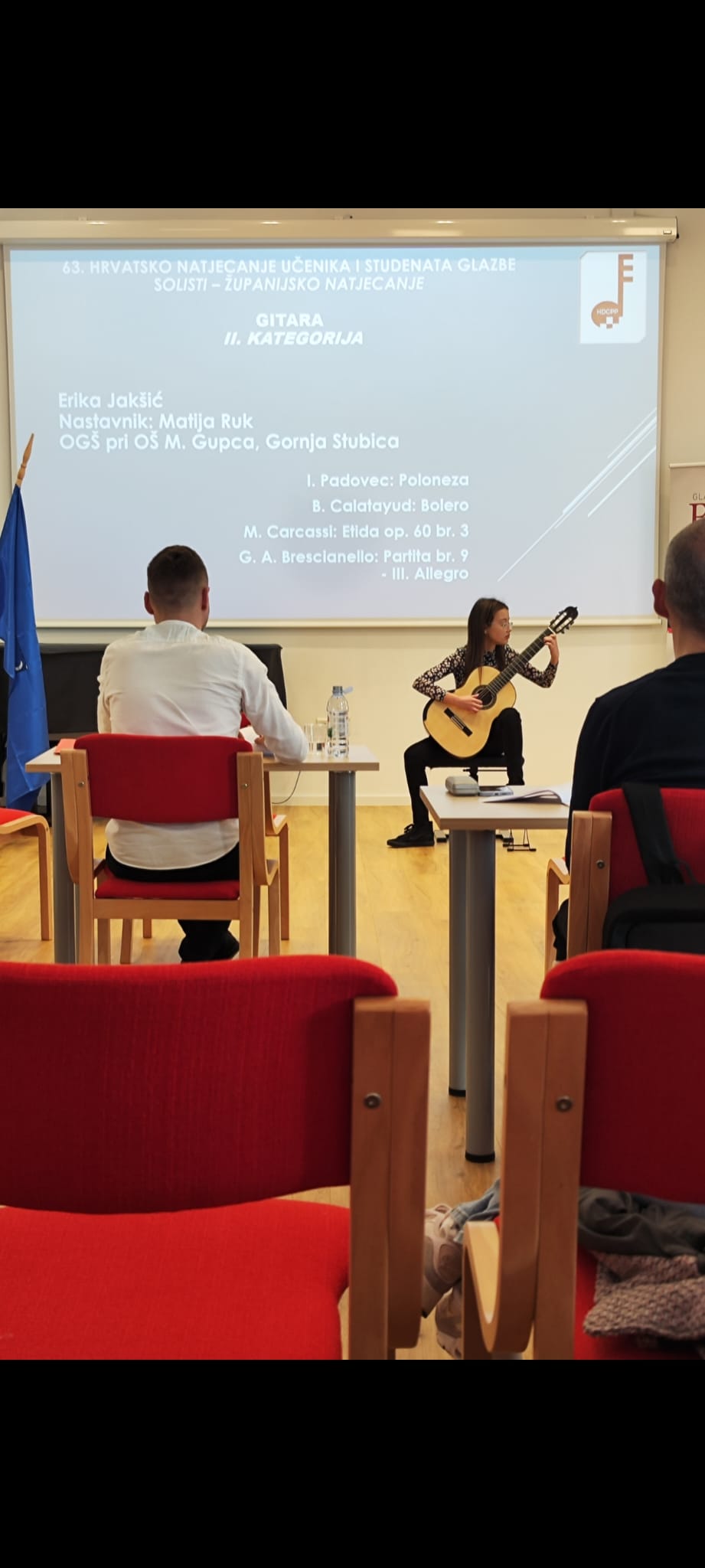 Sjaje vijesti stižu nam iz naše glazbene škole. Na regionalnom natjecanju iz gitare učenica Erika Jakšić osvojila je 1. nagradu i plasirala se na dražvno natjecanje (mentor Matija Ruk mag. mus.). Učenik Matej Pižir osvojio je 2. nagradu (mentor Nikola šrajbek mag. mus.).
