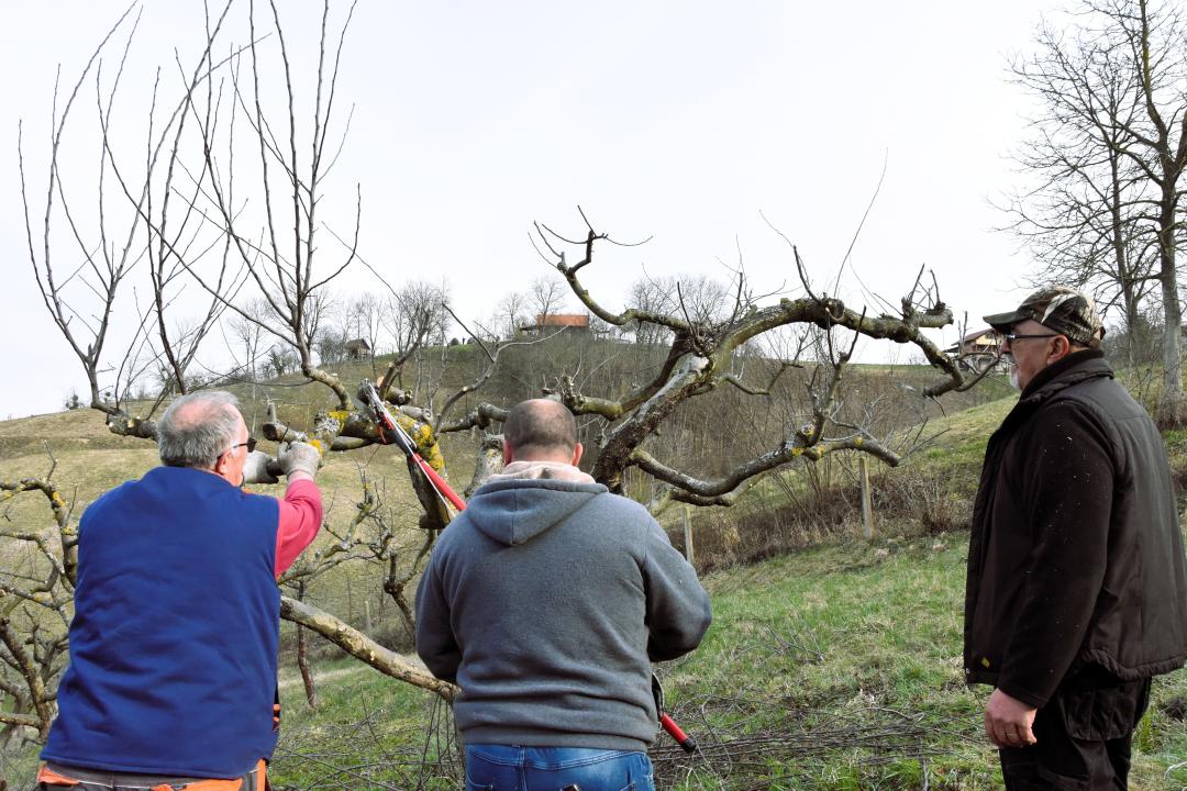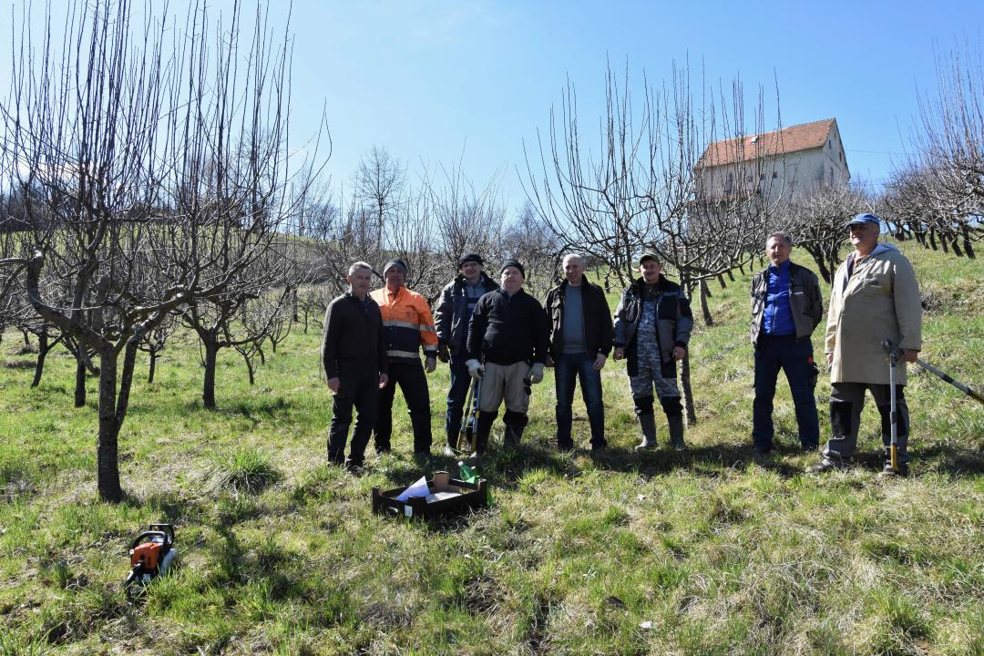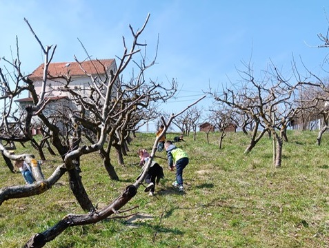 Nekoliko članova udruge u nekoliko dana orezali su voćke, a učenici OŠ Matije Gupca pomogla su u uklanjanju orezanih grana. Bila je to dobra prilika za spajanje ugodne i korisne aktivnosti na svježem zraku. U akciju su se uključili i školski domari, a koordinirali su je ravnatelj Neven Košec i vjeroučitelj Robert Kučak, voditelj slobodne aktivnosti Školski voćnjak.