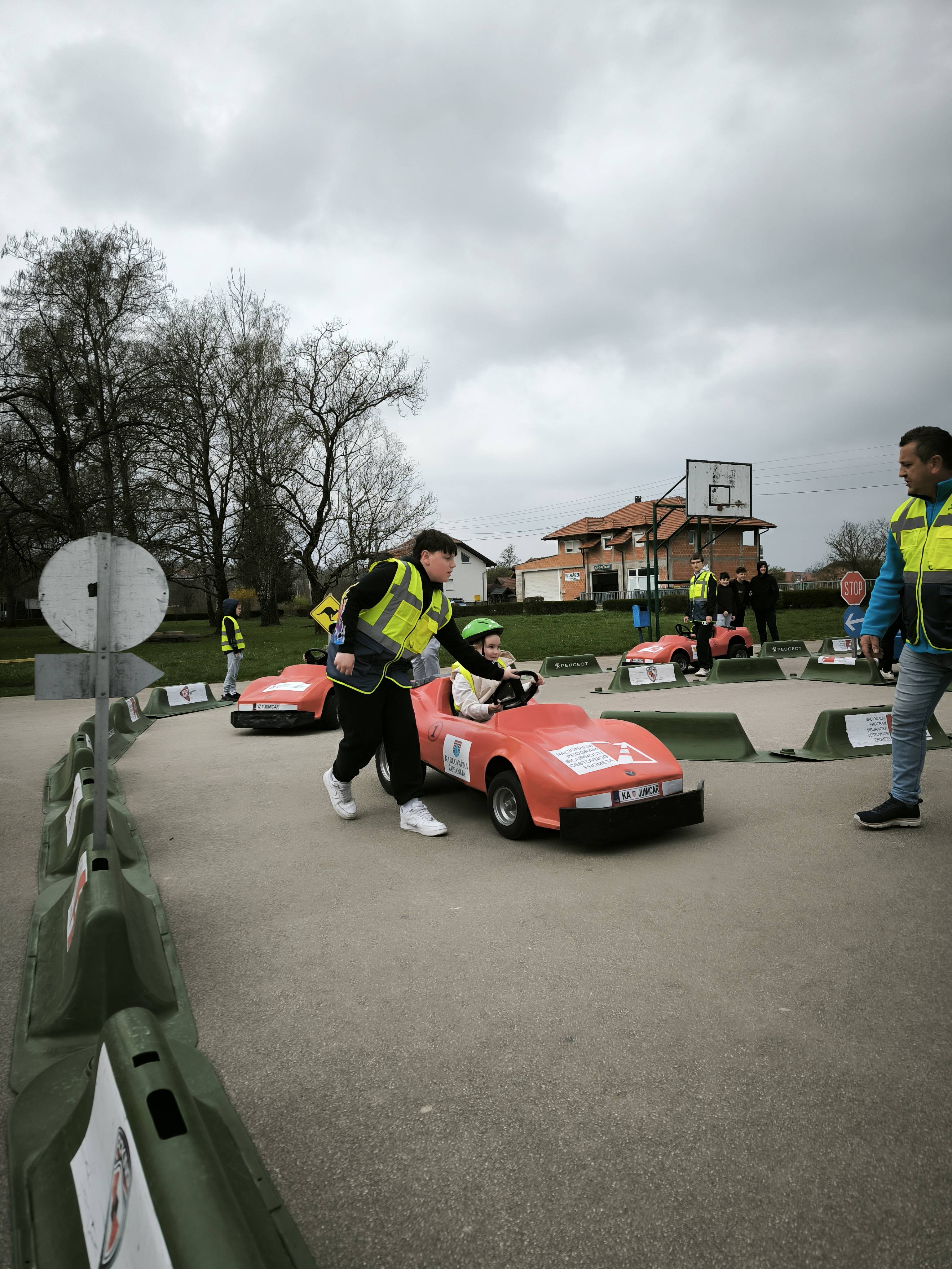 U prvom dijelu programa učenici su prošli teorijsku obuku o cestovnom prometu, prvoj pomoći i protupožarnoj zaštiti.  Promet su na poligonu regulirali iskusni instruktori, a u pomoć su priskočili i učenici 7.b razreda naše škole: Jurica Matija, Lovro Razum, Dominik Benko i Jura Jakšić.