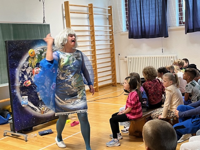 Glumica Mirta Zečević u ulozi naše drage Zemlje upozorila je one na kojima svijet ostaje da je njihovo ponašanje i te kako važno za budućnost našeg planeta. Iako je osnovna ideja edukativna, predstava je učenike opustila, zabavila, raspjevala i oraspoložila.