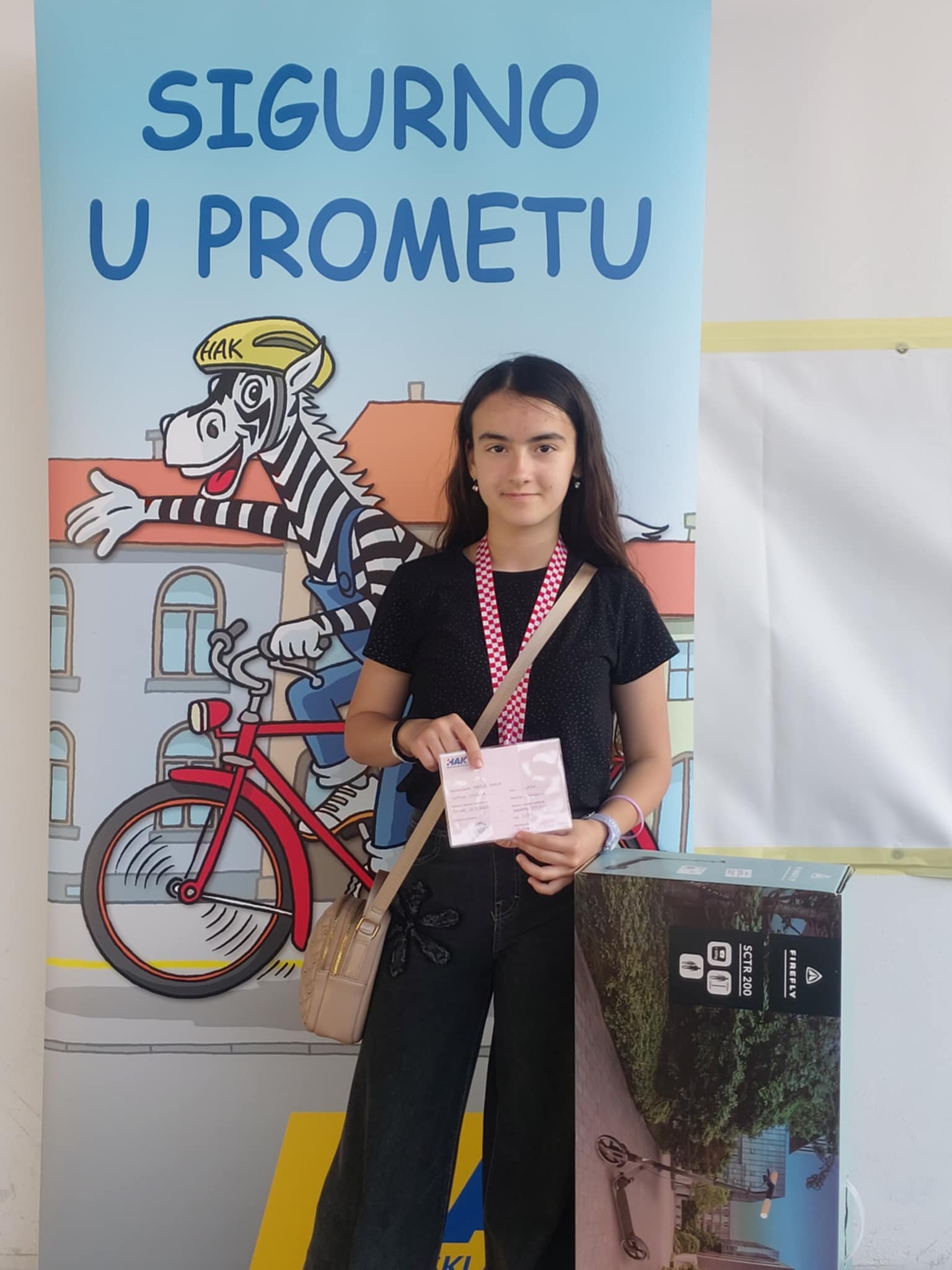 Državno natjecanje Sigurno u prometu se održalo u Zadru od 20. - 23. 5. 2025., a učenica naše škole Lara Jurjević (5.a) je osvojila odlično 4. mjesto!