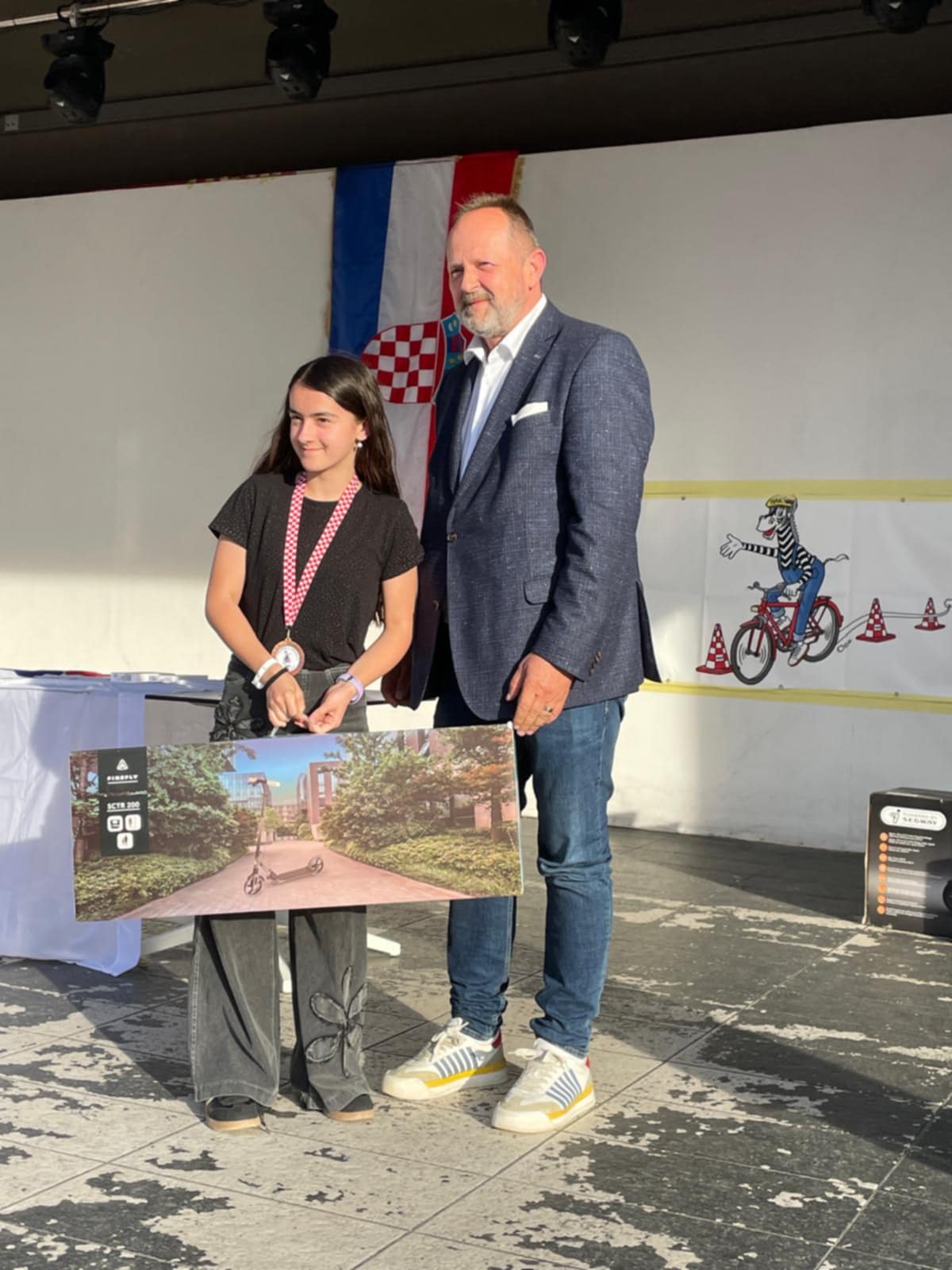 Članica ekipe Krapinsko-zagorske županije je bila i učenica naše škole Lara Jurjević (5.a) koja je u konkurenciji od 42 djevojčice zauzela odlično 4. mjesto! Za svoje prikazano znanje i vještine nagrađena je romobilom te je postala vlasnica potvrde za samostalno upravljanje biciklom u prometu, tzv. vozačkom dozvolom.