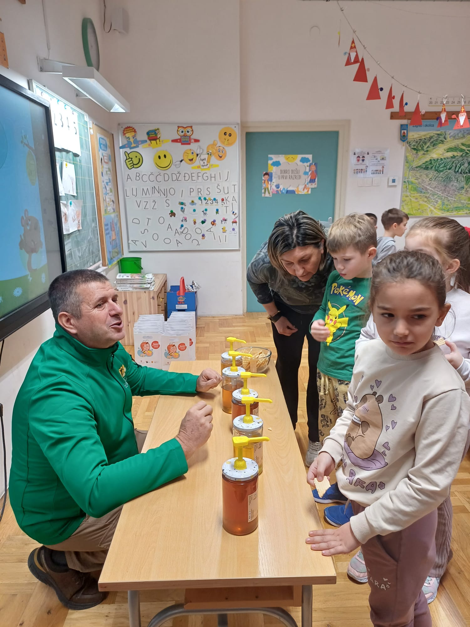 Učenike 1.a i 1.b razreda posjetio je poznati stubički pčelar Božidar Ladišić te im ispričao zanimljivosti s kojima se susreće prilikom proizvodnje meda.