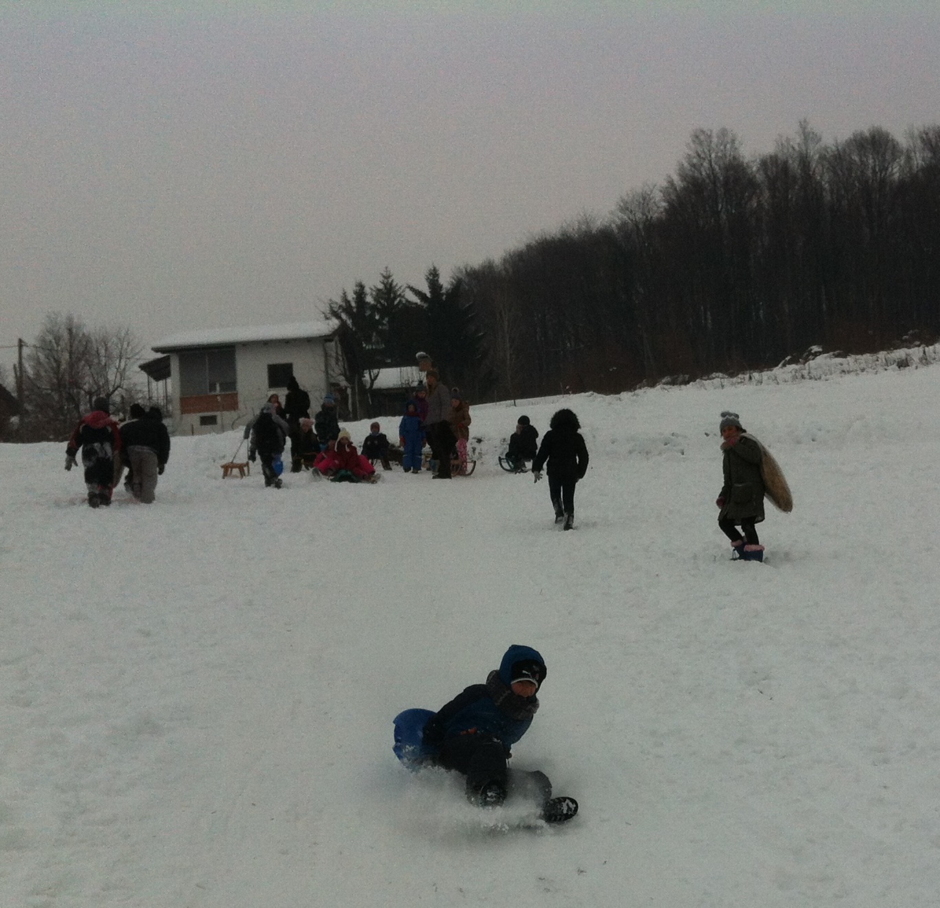 Šteta bi bilo ne osjetiti miris snijega, njegovu ljepotu i čarolije koje nam pruža. Tako su danas učenici PŠ Sveti Matej uživali u zimskim radostima sanjkajući se, kotrljajući se niz brijeg u Svetom Mateju. Naime, već prije istražili su mjesto gdje bi se mogli sanjkati i uživati u zimskim radostima. Ovog puta, to mjesto bila je prekrasna nizbrdica kod razrednog prijatelja, Leona Jelovečki, tik do njegove kuće. Učenici su donijeli svoje sanjke, plastične tanjure i ostale rekvizite za sanjkanje. Leonov djed pripremio je i vreće napunjene slamom. Staza je već bila spremna kao i vesela srca svih učenika koji su jedva dočekli da jurnu niz nju. I tako, jedan za drugim spuštali su se, kotrljali, padali, dizali... Naravno, i učiteljice zajedno s njima. Rumenih obraza i osmijeha na licu nakon sat vremena okupili su se na čajanku koju je uz ukusne i slasne kolačiće pripremila Leonova mama, Marina. Zahvalili su se domaćinima na gostoprimstvu te vesela lica, okrijepljna tijela krenuli put prema školi, a zatim svojim kućama. Jedino što se moglo čuti, bile su rečenice oduševljenja i pitanja: "Učiteljice, kada ćemo opet ići?", "Bilo mi je super!", "Hoćemo li ići drugi puta kod mene?"