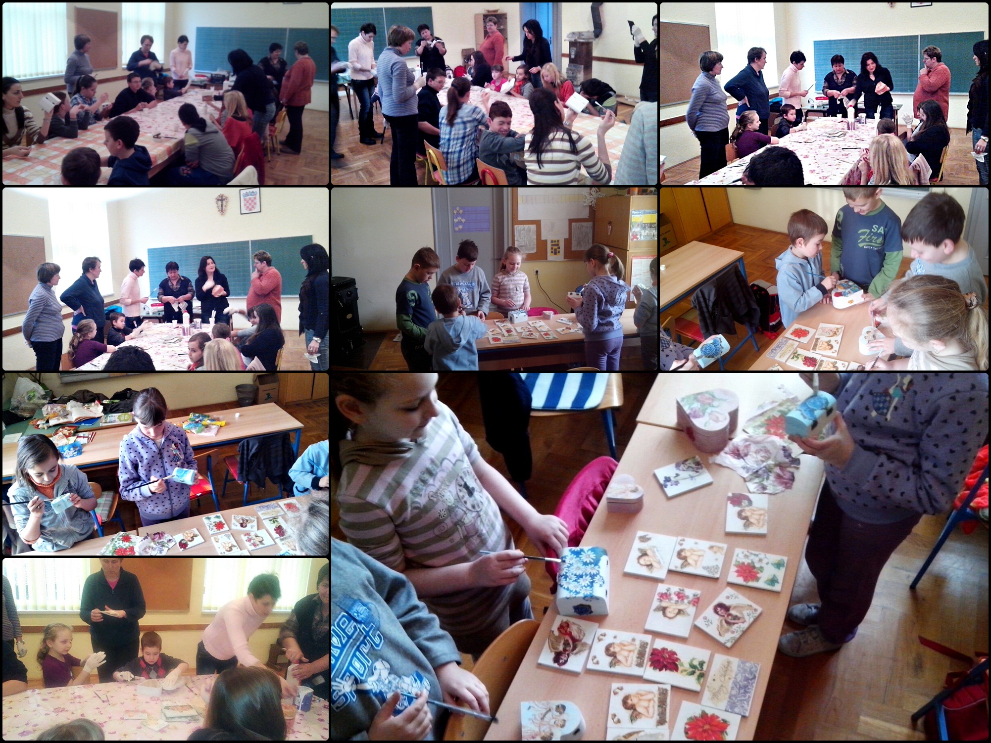 Predsjednica i tajnica Udruge, Ljubica Jembrih i Danica Knok, djecu su upoznale s principima rada salvetnom tehnikom.