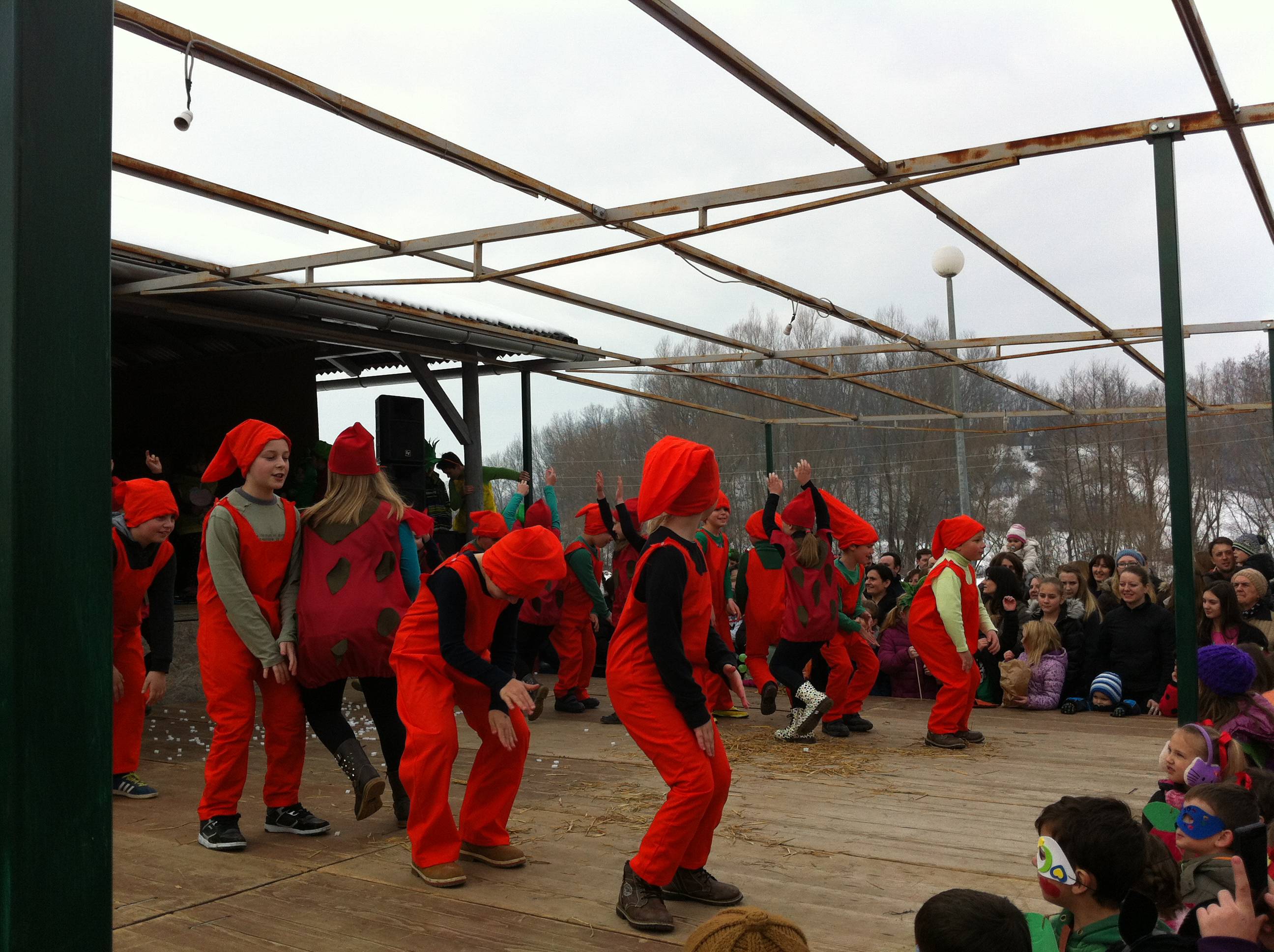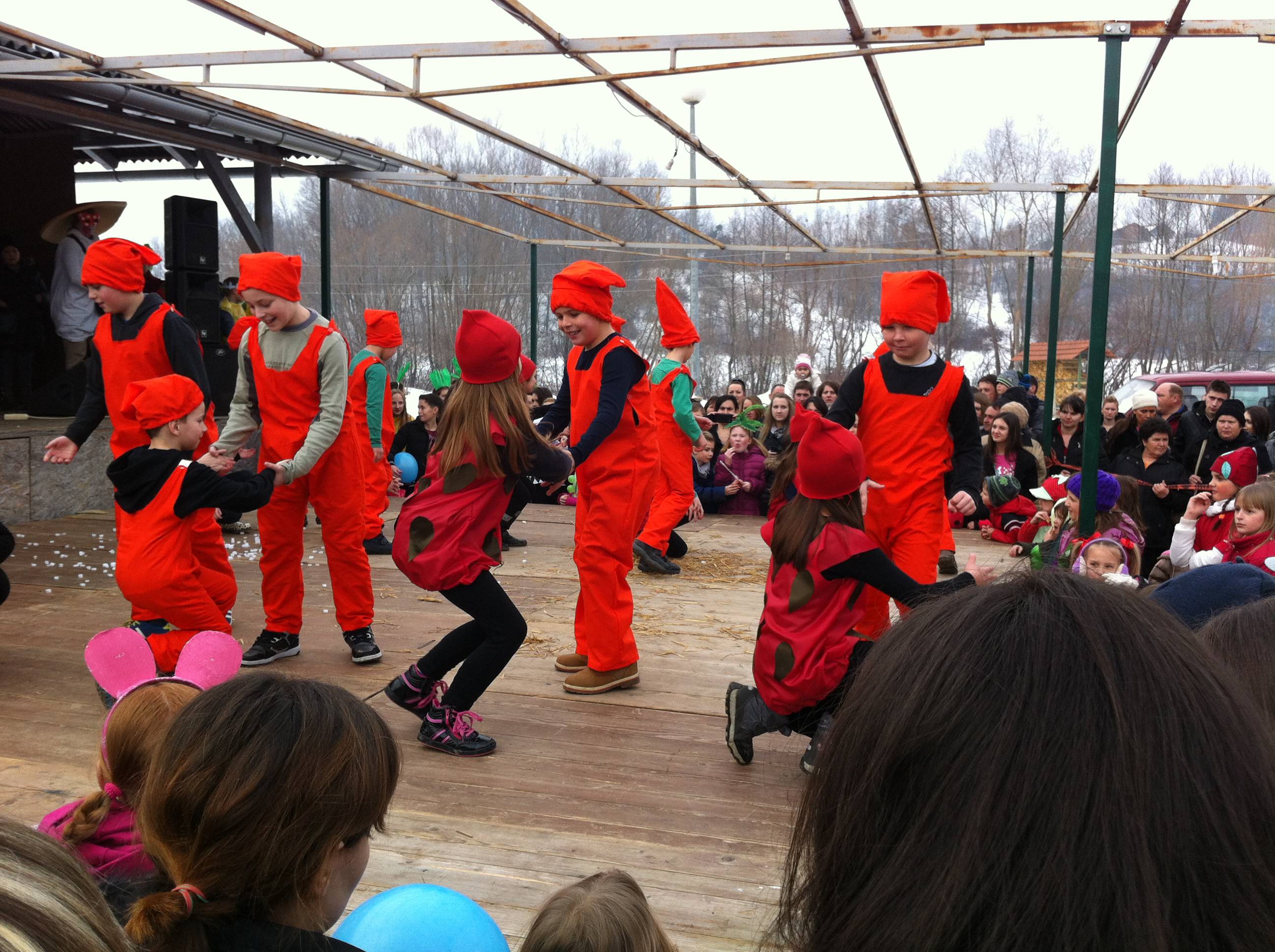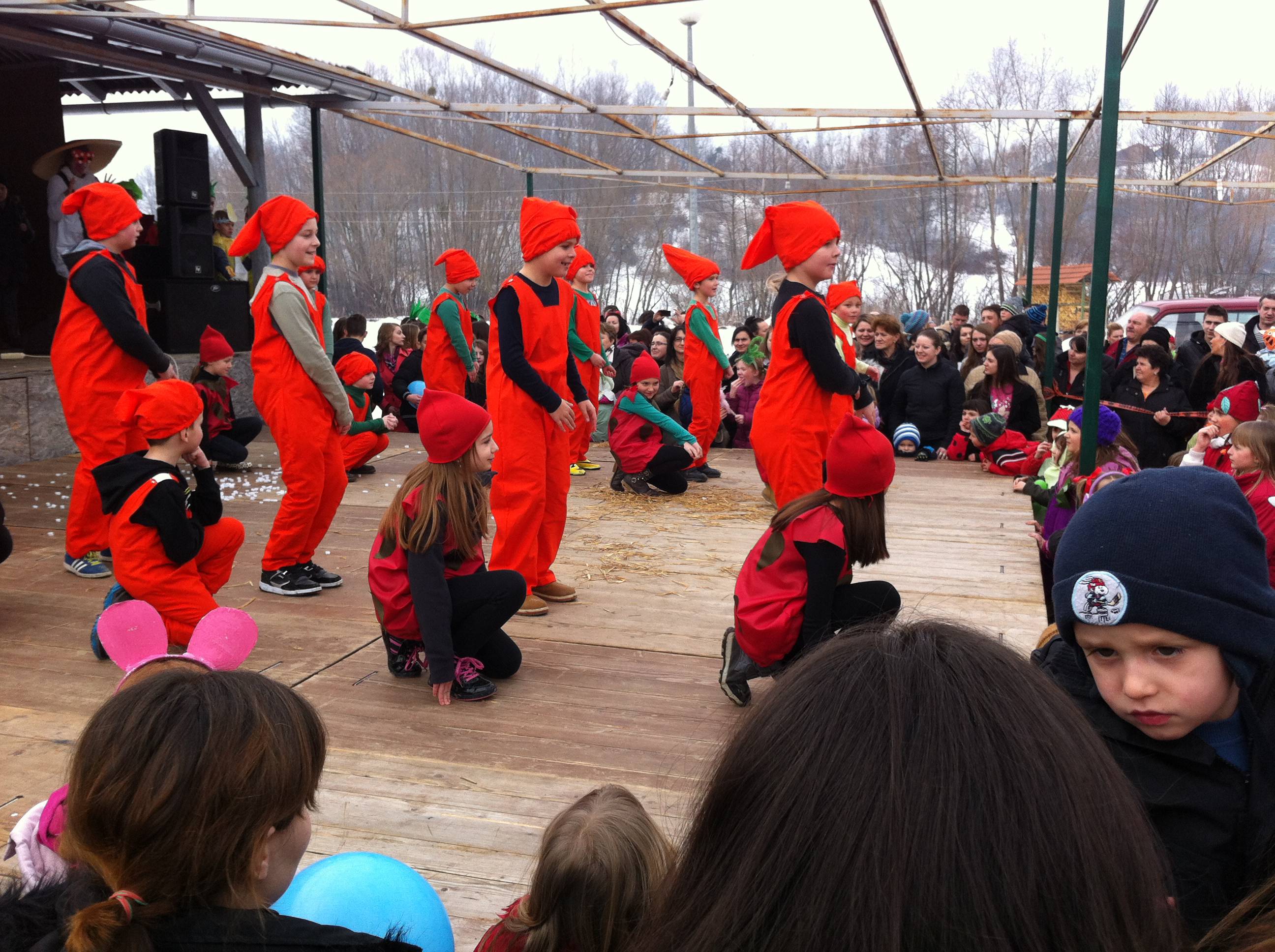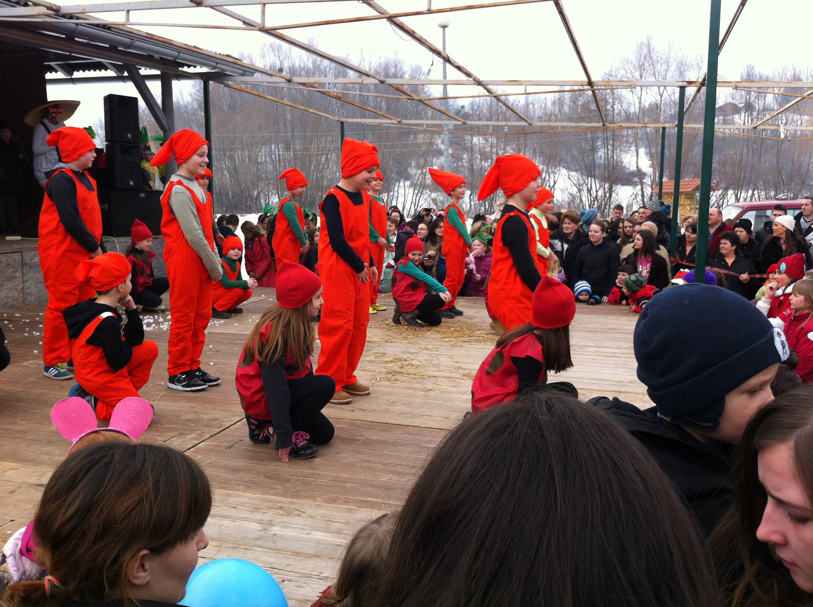 Vesele jagodice i mrkvice iz PŠ Sveti Matej danas, 14.2.2015. na Valentinovo natupale su na gornjostubičkom Fašniku kod Sportskog centra u Gornjoj Stubici.