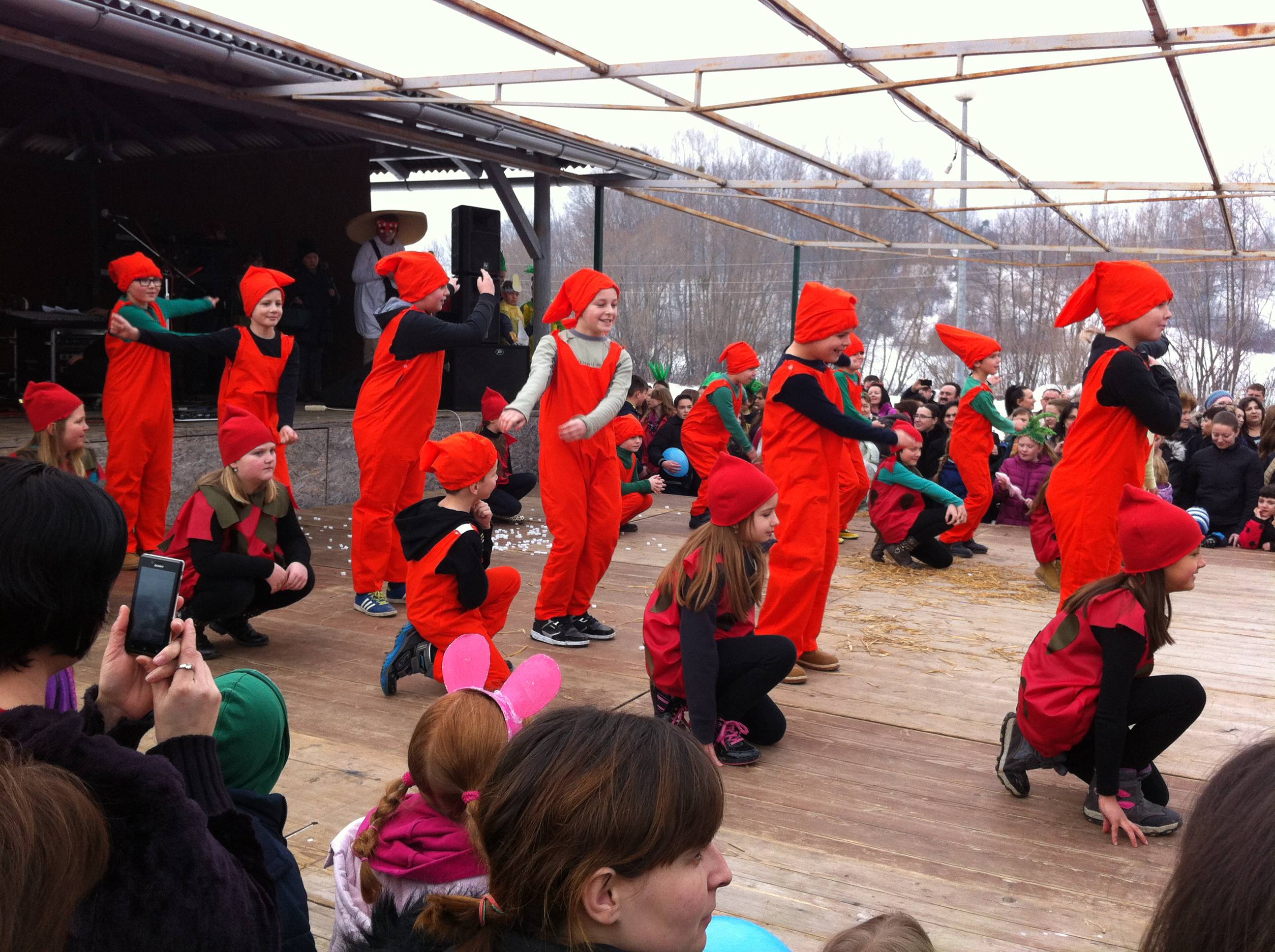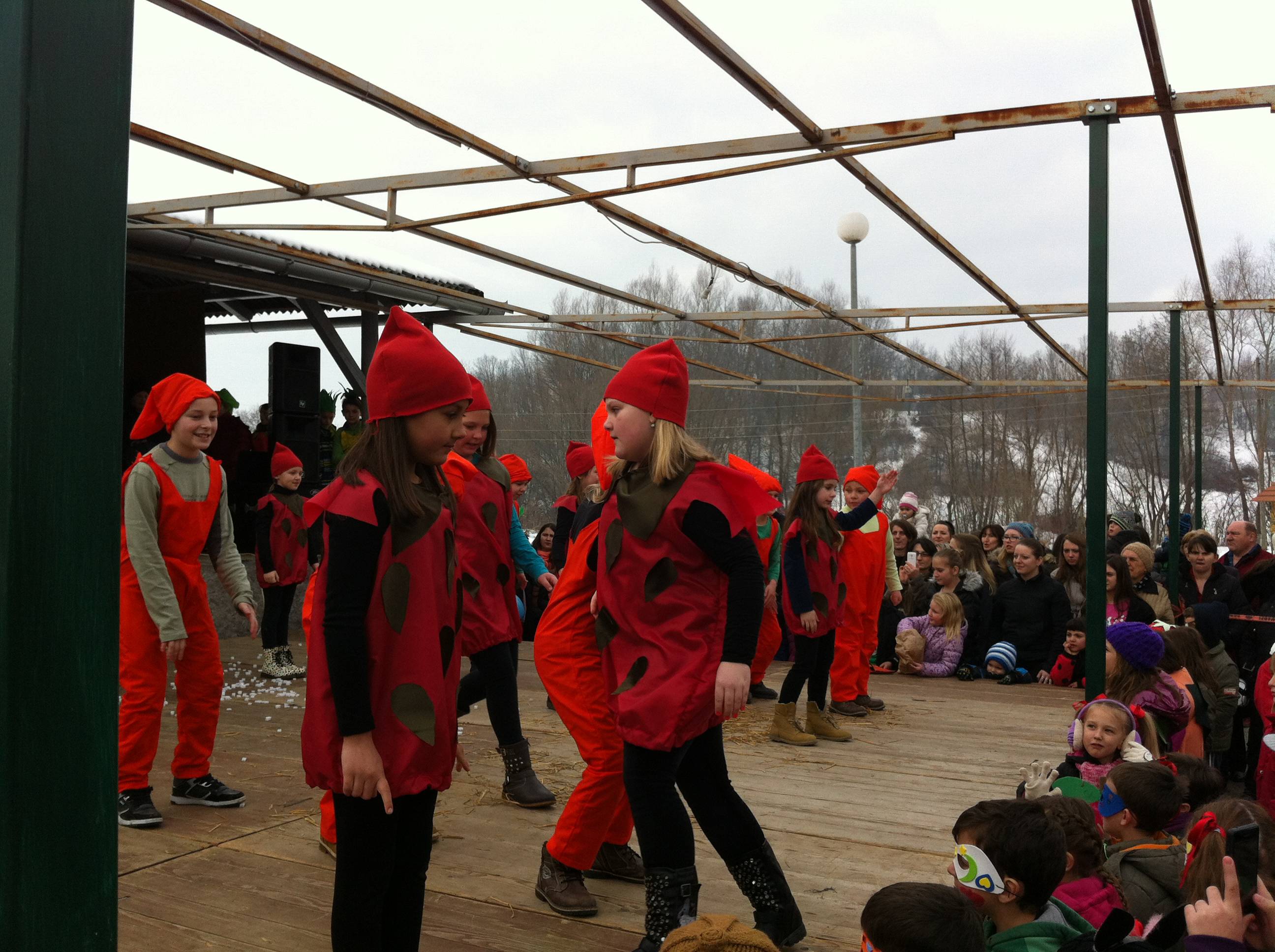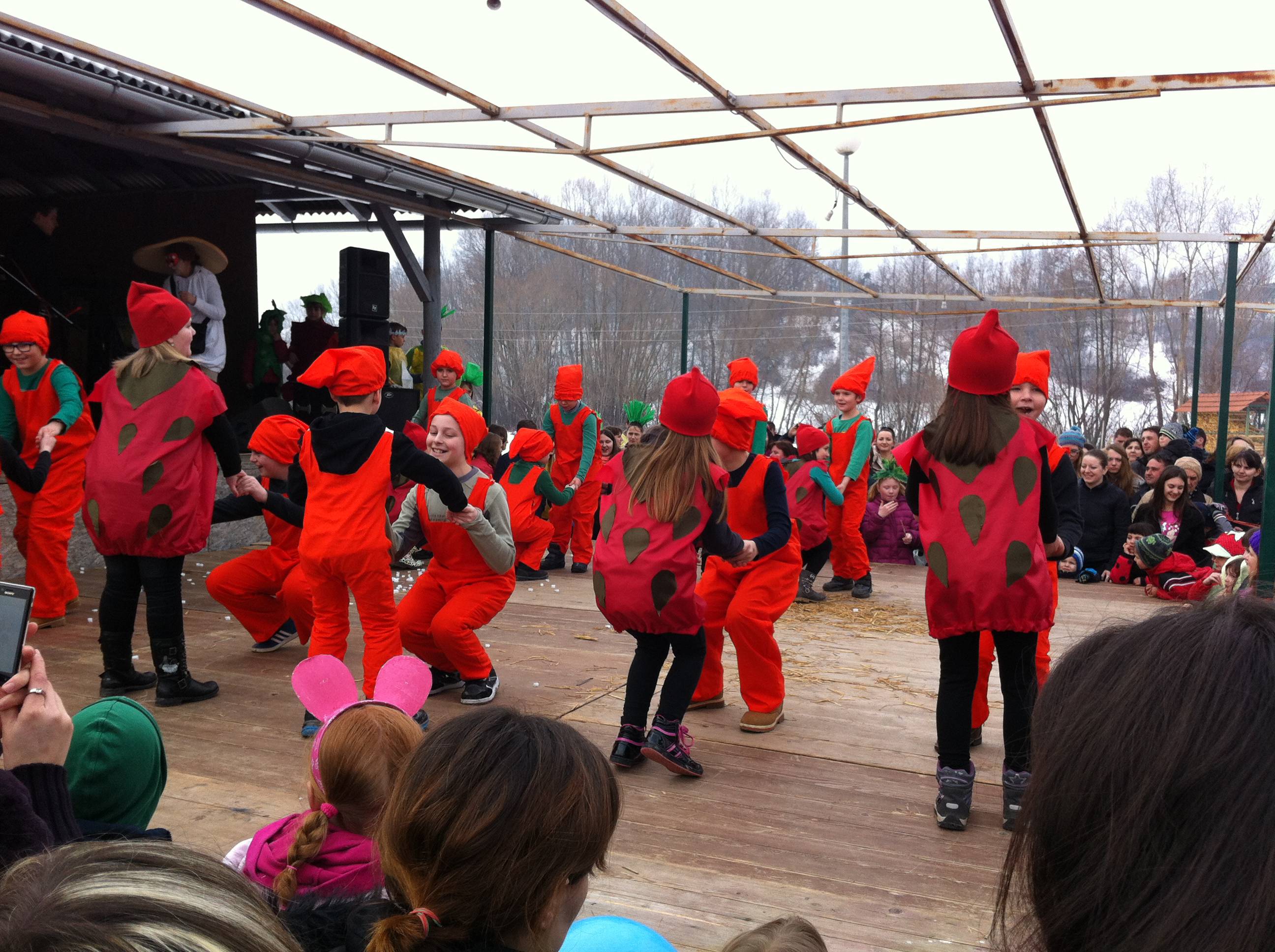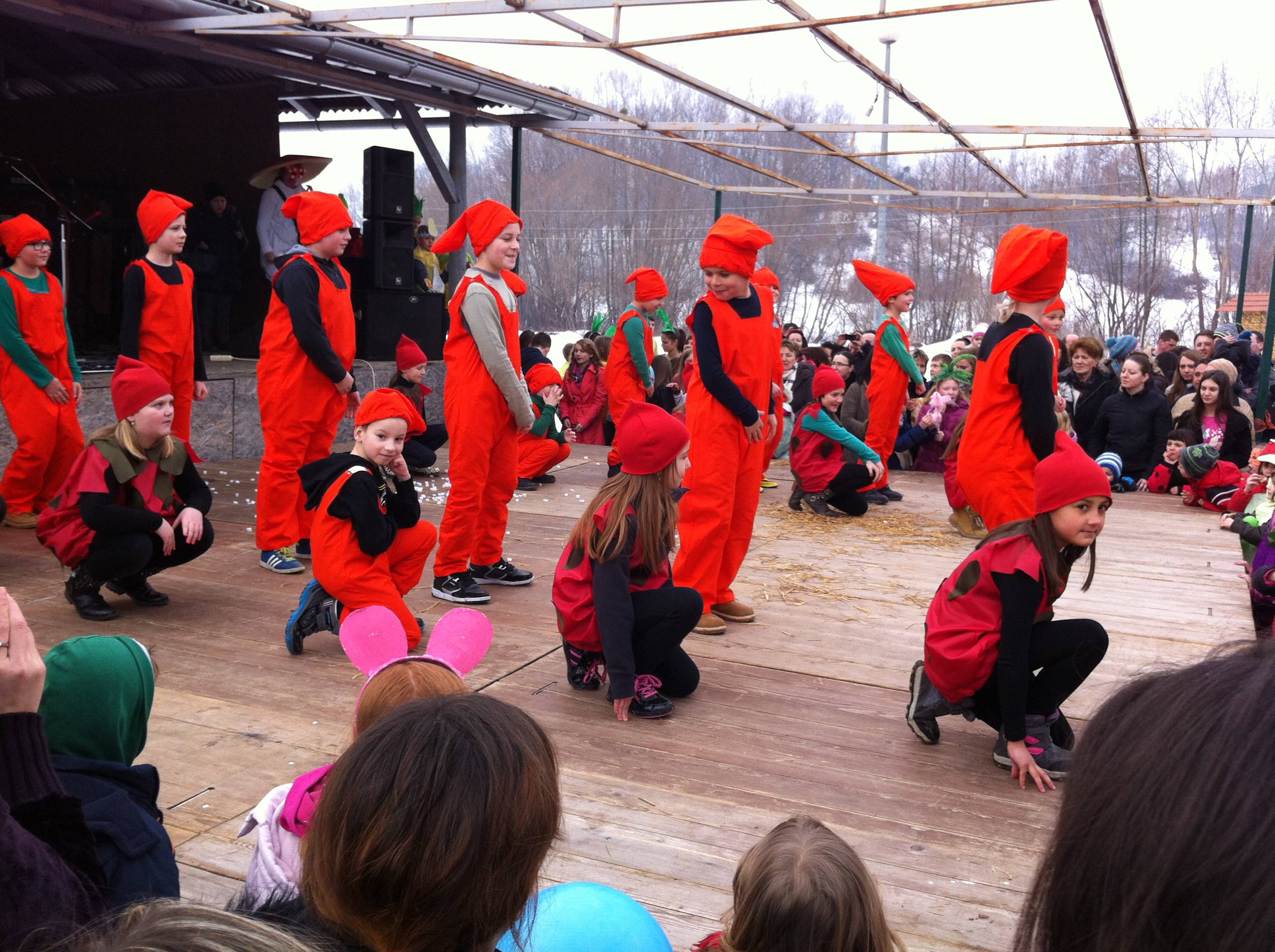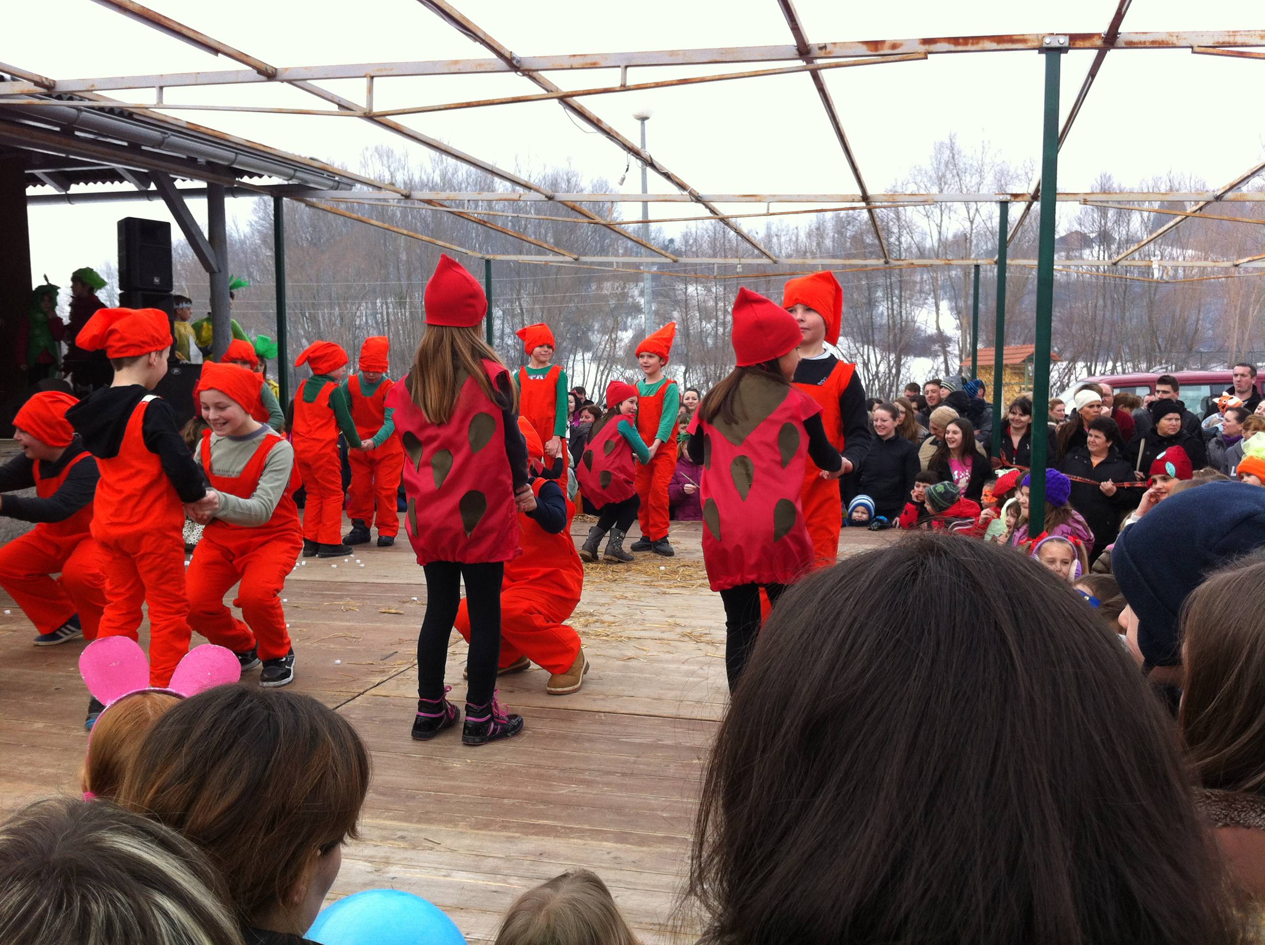 Vesele jagodice i mrkvice iz PŠ Sveti Matej danas, 14.2.2015. na Valentinovo natupale su na gornjostubičkom Fašniku kod Sportskog centra u Gornjoj Stubici.