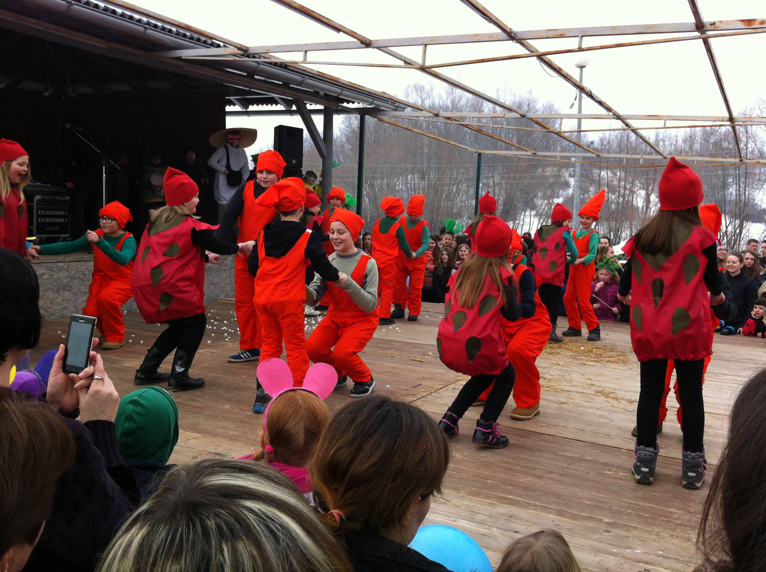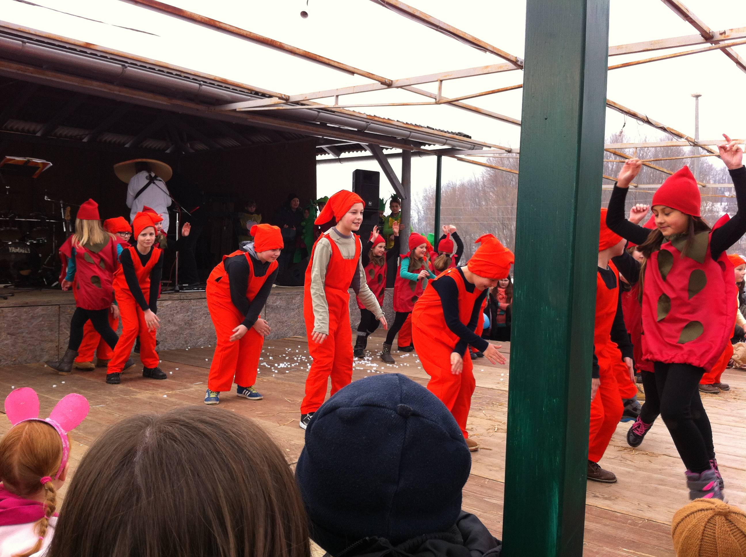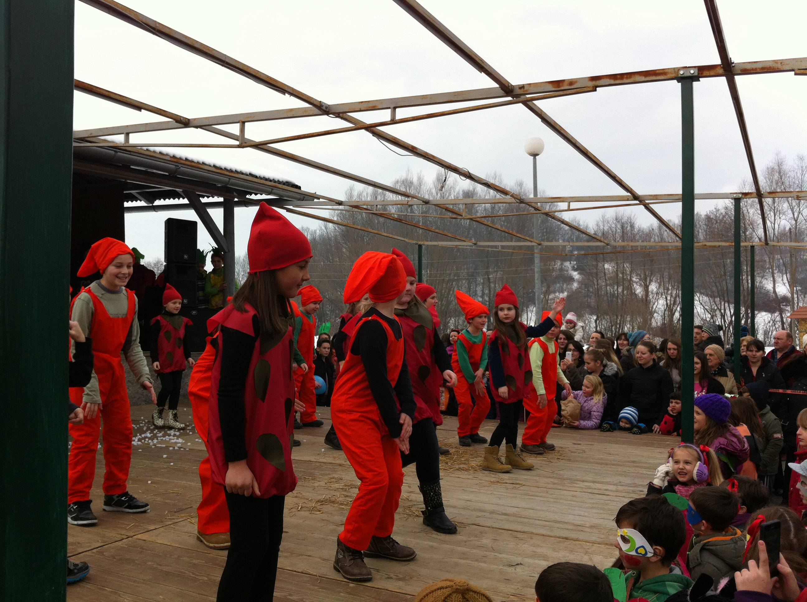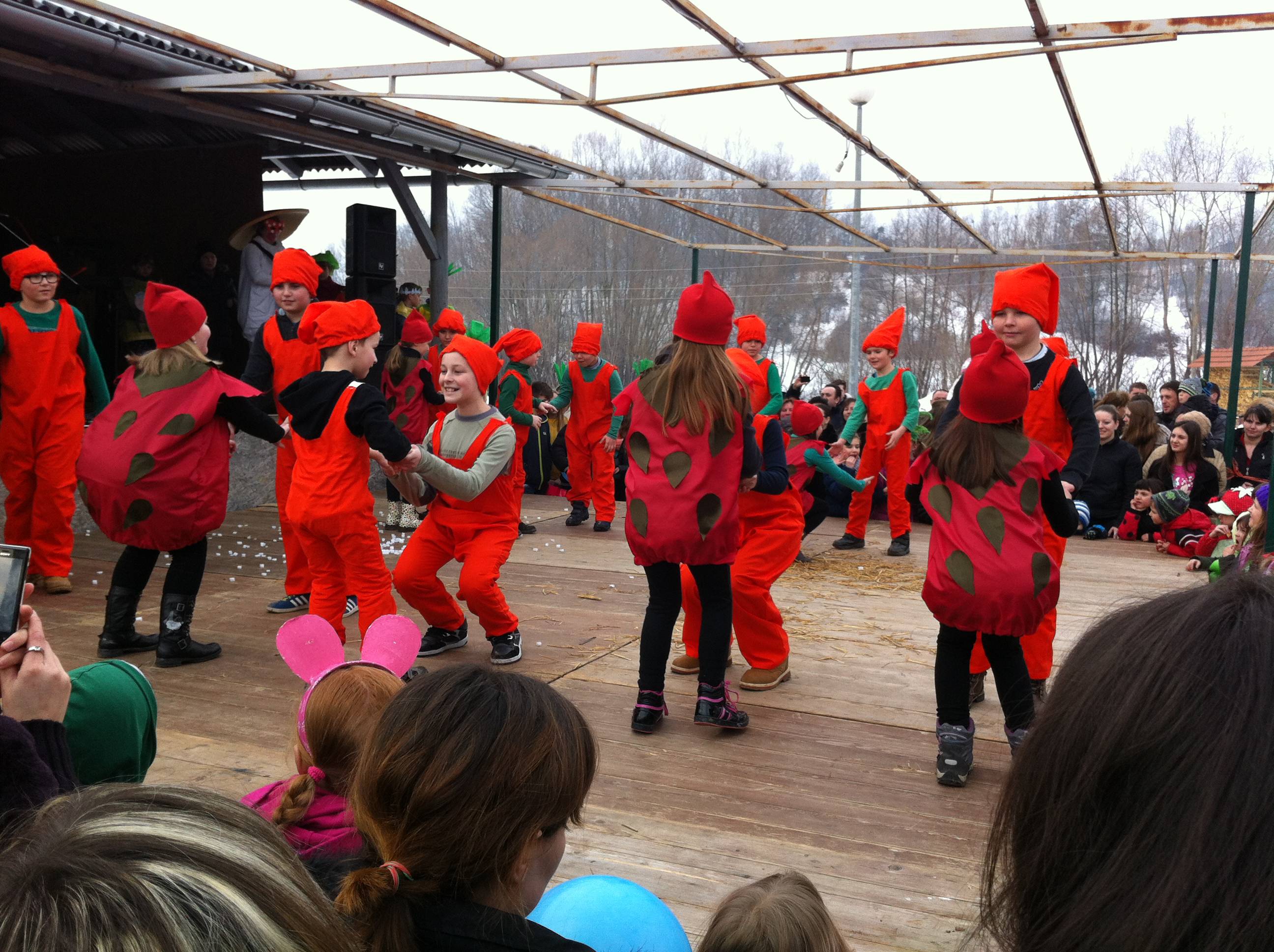 Vesele jagodice i mrkvice iz PŠ Sveti Matej danas, 14.2.2015. na Valentinovo natupale su na gornjostubičkom Fašniku kod Sportskog centra u Gornjoj Stubici.