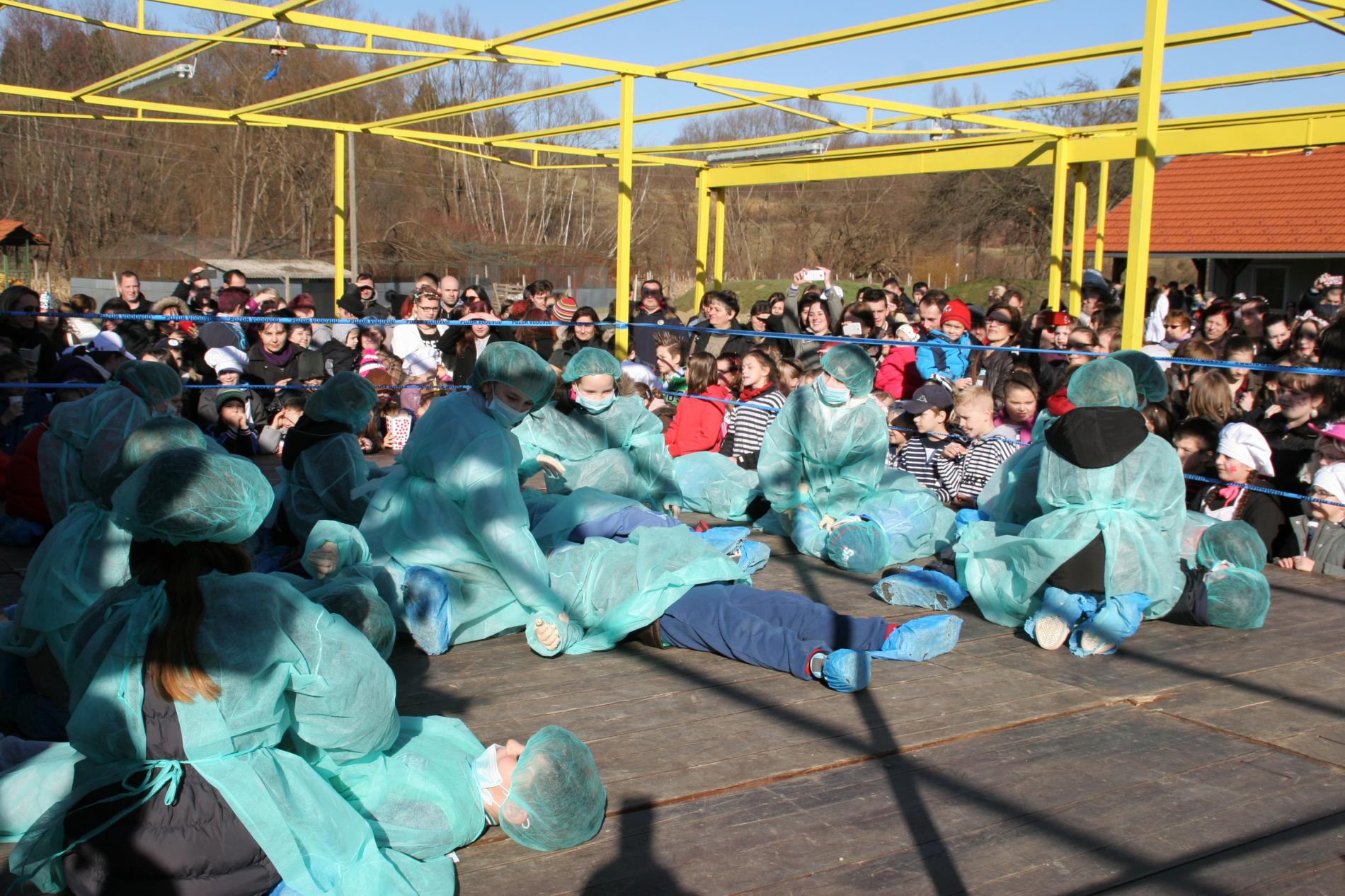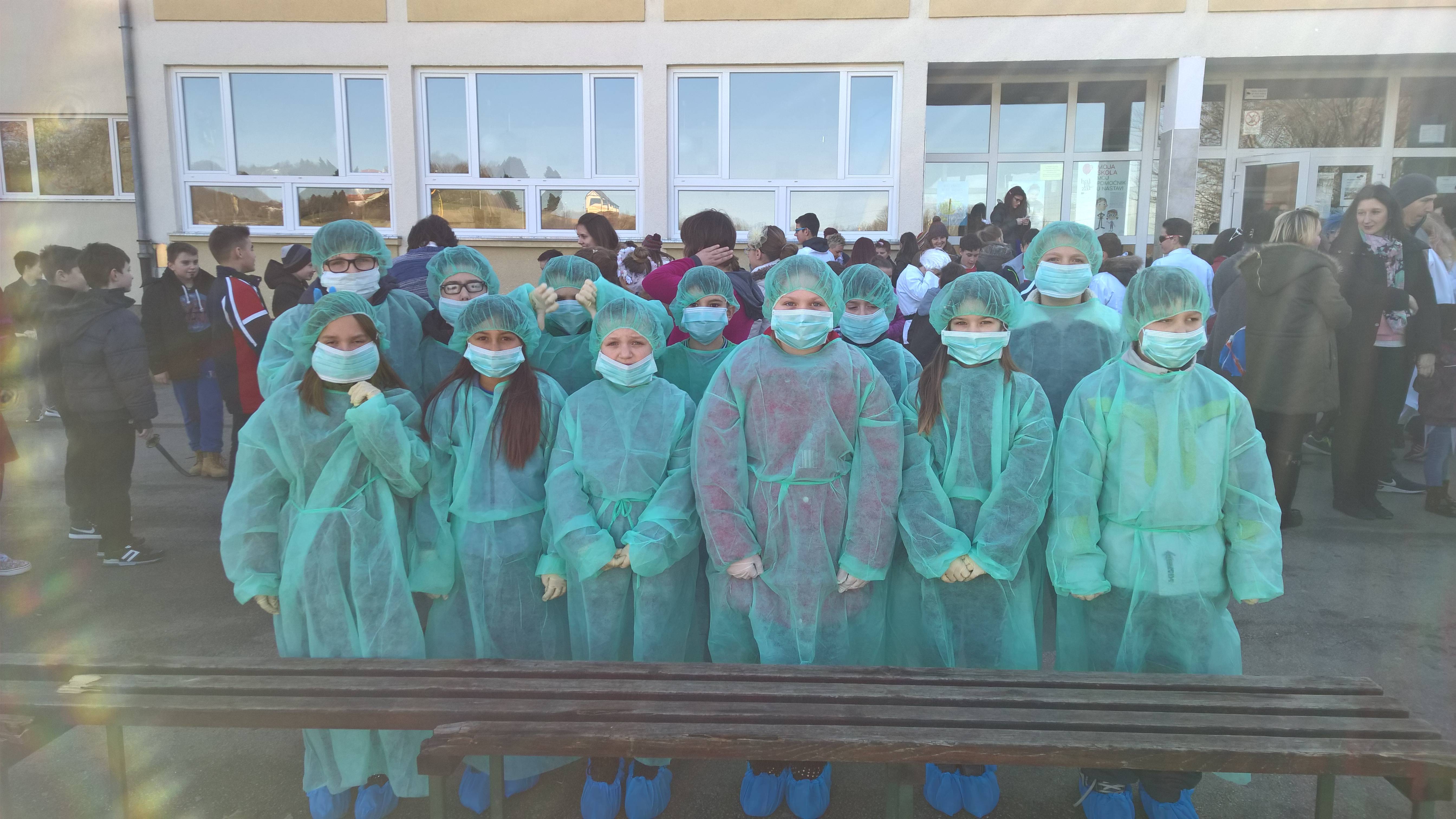 Maskirali su se u liječnike - kirurge. Sa ostalim veselim i rasplesanim maškarama izveli su svoju kratku točku kojom su prikazali, kao i ostale maškare kojim se sve zanimanjima ljudi bave. Nakon nastupa učenici su počaššćeni krafnama, grickalicama i sokovima koje su pripremile vrijede ruke iz Udruge žena Hum Stubički te su zajedno sa svojim roditeljima pratili nastavak programa ili se uputili prema svojim kućama