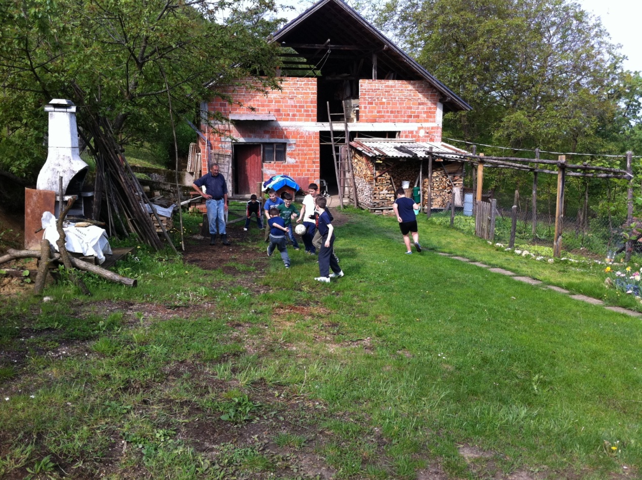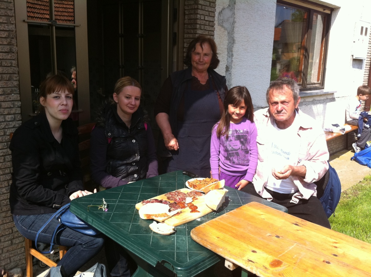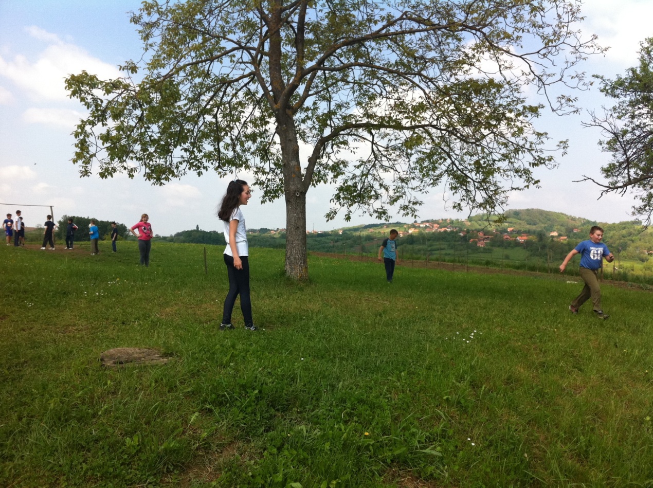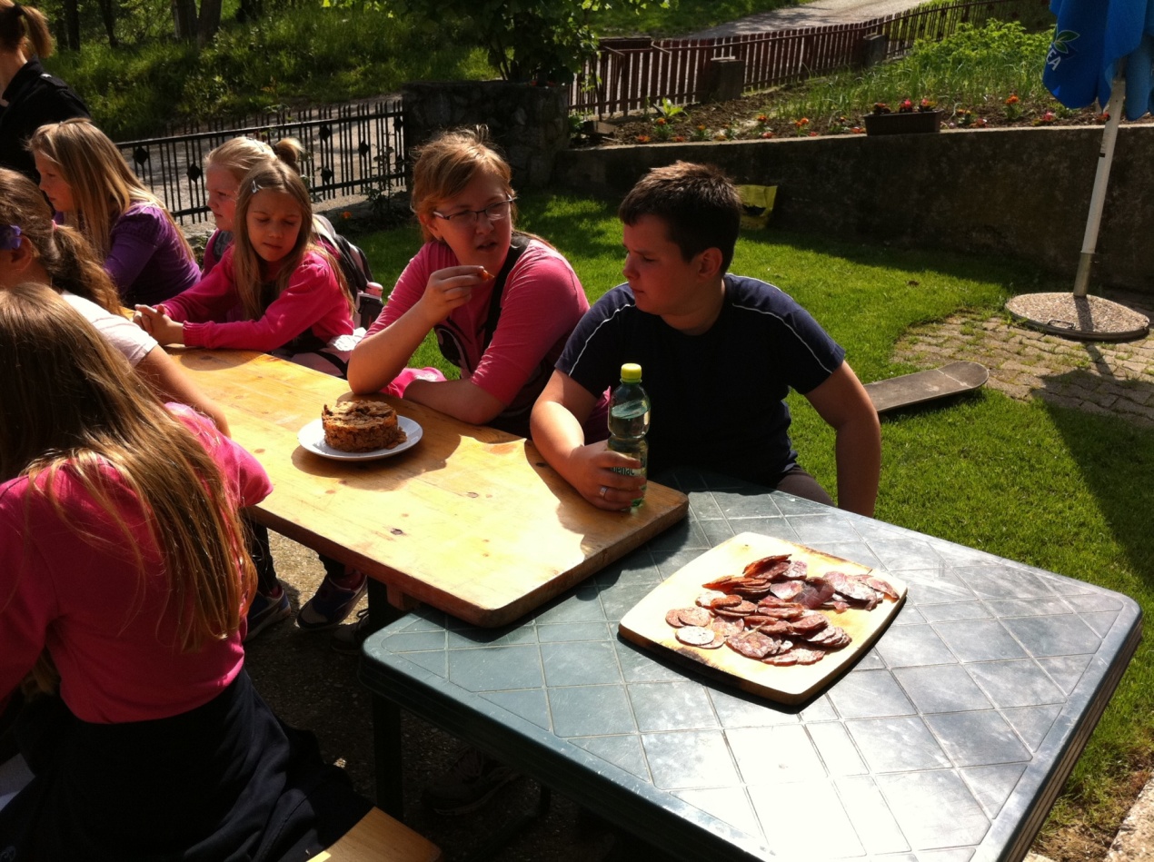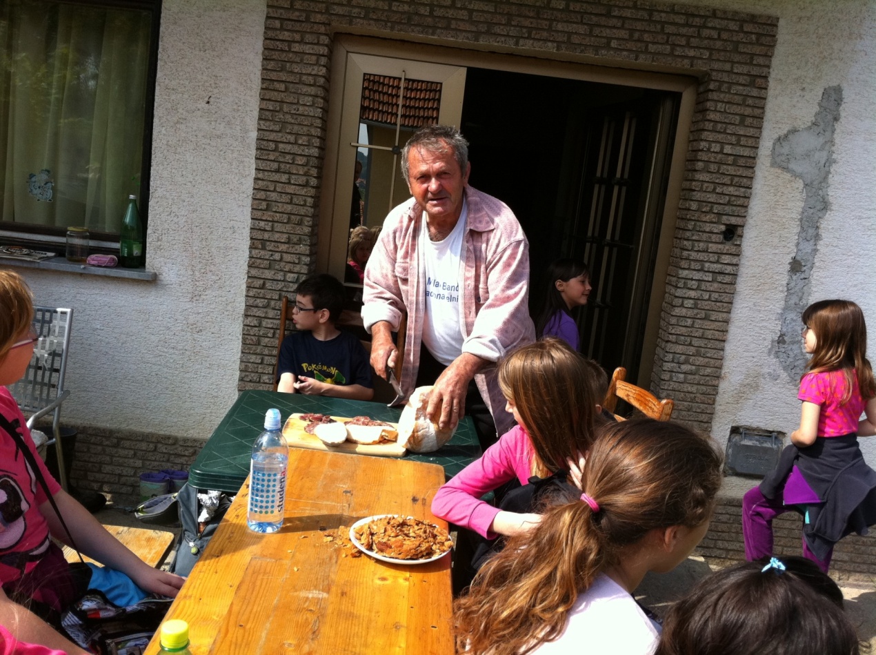 Krenuli su pješice s razrednim učiteljicama Dianom i Bernardom, asistenticom Ivanom te učiteljicom Suzanom iz njemačkog i učiteljicom Martinom iz engleskog jezika. Prvo su posjetili zaselak Kovačići. Tamo su učenike ugostili ljubazni domaćini, obitelj Stjepana Kovačić. Njegova supruga Dragica i kćer Štefica počastile su slatikišima, sokom i kavom. Dok su učiteljice razgovarale uz kavu s domaćicama, učenici su se poigrali. Na kraju su se pjesmom zahvalili domaćinima i krenuli put prema zaselku Sumpori. I opet je učenike dočekalo ugodno iznenađenje. Djed i baka, učenice Valentine Sumpor pozvali su ih na malu okrepu i počastili domaćim specijalitetima: čvarcima, domaćim kobasicama, kulenom i šunkom. Nakon igre, Valentin djed je učenicima pokazao krave i svinje. Bilo je zanimljivo vidjeti vesela dječja lica i zanimanje za domaće životinje. Pjesmom su se zahvalili domaćinima na gostoprimstvu te krenuli pješice prema zaselku Podvorci. Sljedeća stanica je bila kod učenika Tomislava Herceg. Učenici su se poigrali na travnatom igralištu, a neki su samo odmarali od dugog hodanja. Nakon odmora uputili su se prema školi, pomalo umorni, ali vesela i osunčana lica.