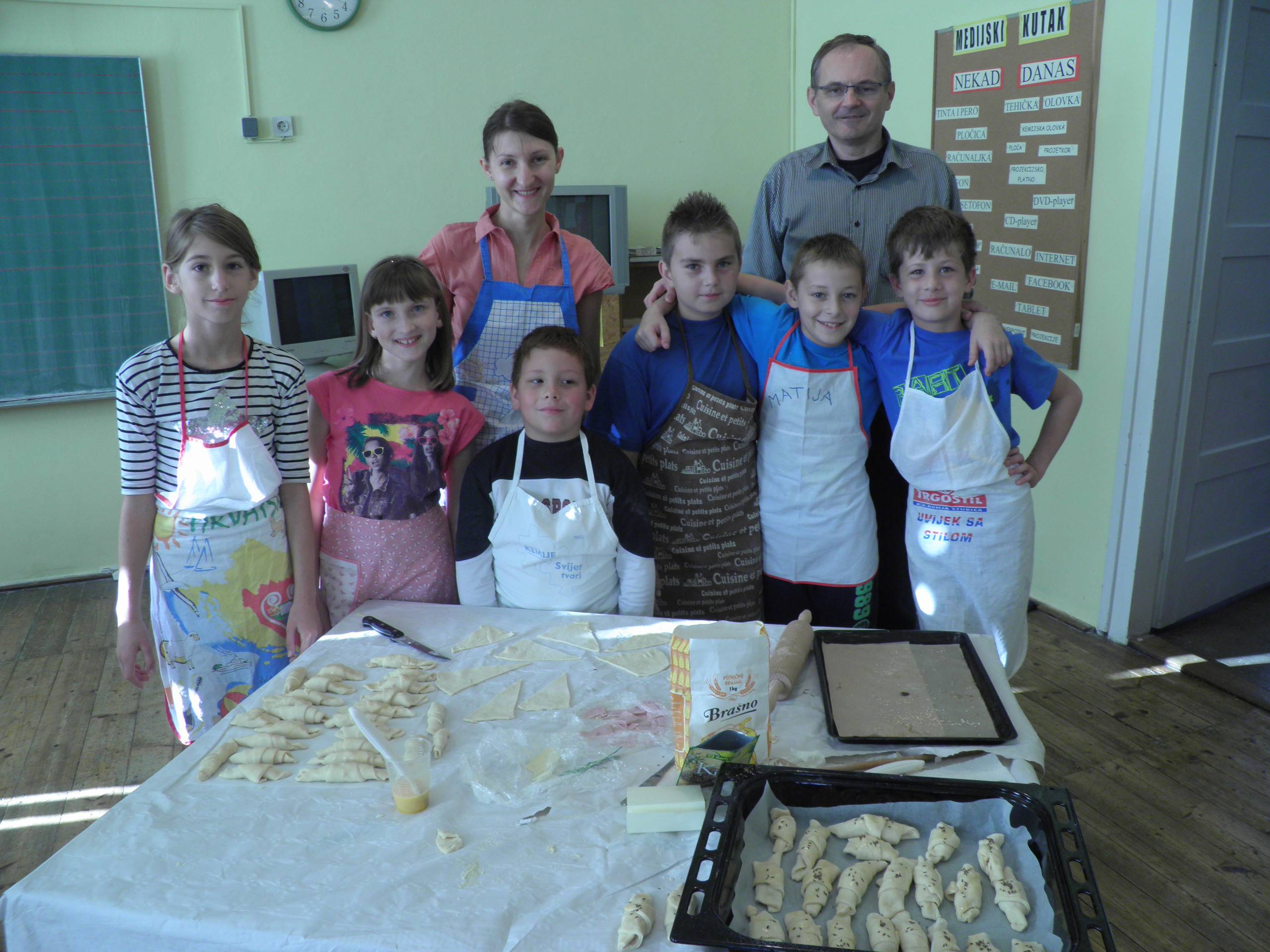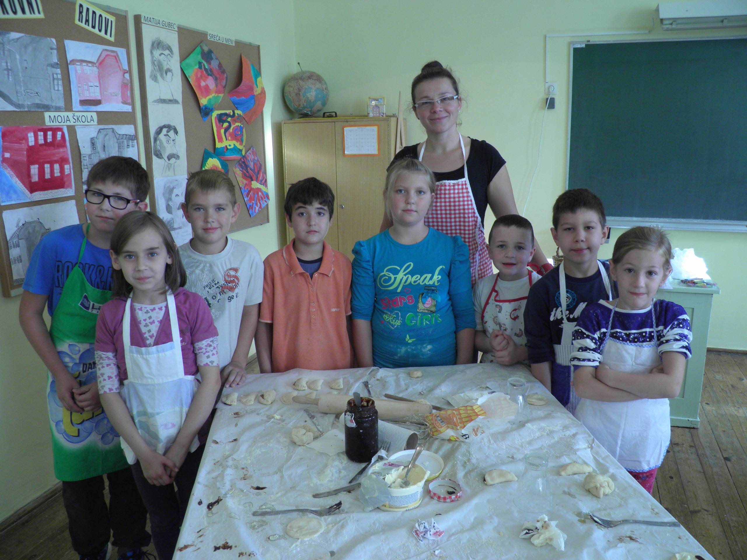 Kada smo stigli u Područnu školu Sveti Matej najprije smo se upoznali s učenicima, a poslije smo išli u razgledavanje Područne škole Sveti Matej. Tada smo se pripremili za pečenje kruha i peciva.