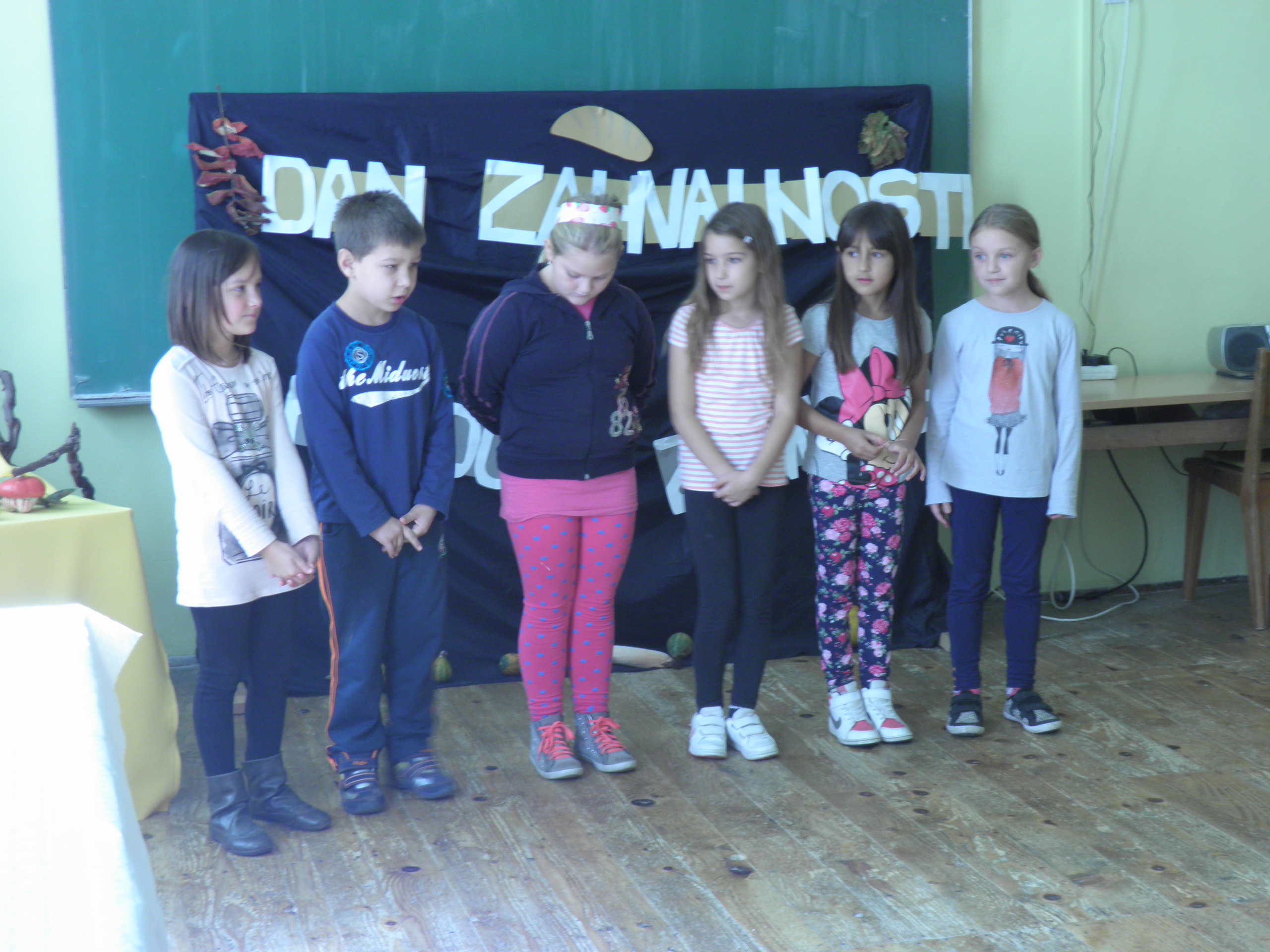 Rasporedili smo se u četiri grupe. Ja sam bila u grupi s učiteljicom Helenom. Radili smo slance od sira i šunke. Pomagao nam je i vjeroučitelj Robert. Kada smo završili s pravljenjem slanaca otišli smo van na razgibavanje. Trčali smo pet krugova oko igrališta. Nakon toga je došao velečasni. Išli smo u razgledavanje crkve Sv. Mateja apostola. Usput smo otišli na igralište kraj Vatrogasnog doma. Povratkom u školu imali smo blagoslov kruha i peciva, a poslije malu priredbu. Mi iz Dubovca smo također nešto pripremili, neke recitacije. Mateja je bila prva. Ona je izvela recitaciju "Pek". Matija je izvodio monolog s Kruškicom Nestaškicom. Poslije njega sam ja bila na redu. Bila sam jako uzbuđena. Recitirala sam pjesmu "Kruh". Nakon toga smo se mogli poslužiti blagoslovljenom hranom. Mogli smo si uzeti i pudinge od čokolade. Poslije smo imali tjelesni. Podijelili smo se u četiri grupe. Moja grupa uvijek je bila treća. Preskakivali smo uže, a na kraju s učenicima iz Svetog Mateja povlačili uže.