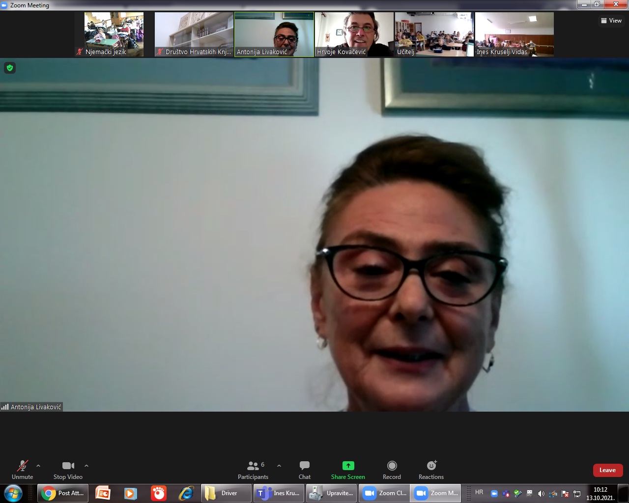 U srijedu 12.10.2021. treći školski sat u učionice 5.a, 5.b i 6.b ušla je književnica Maja Brajko Livaković. Naravno, bez obzira na svu maštu koju imamo, ipak nije fizički boravila u isto vrijeme na tri mjesta nego smo se koristili tehničkom opremom i suvremenim alatima za komunikaciju te se razgovor s autoricom odvijao online.