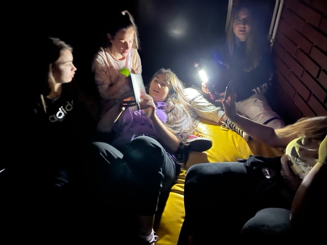 Za kraj, ponovno smo se vratili u sportsku dvoranu, ovaj puta mračnu i zavalili se u strunjače te čitali „hororce“.