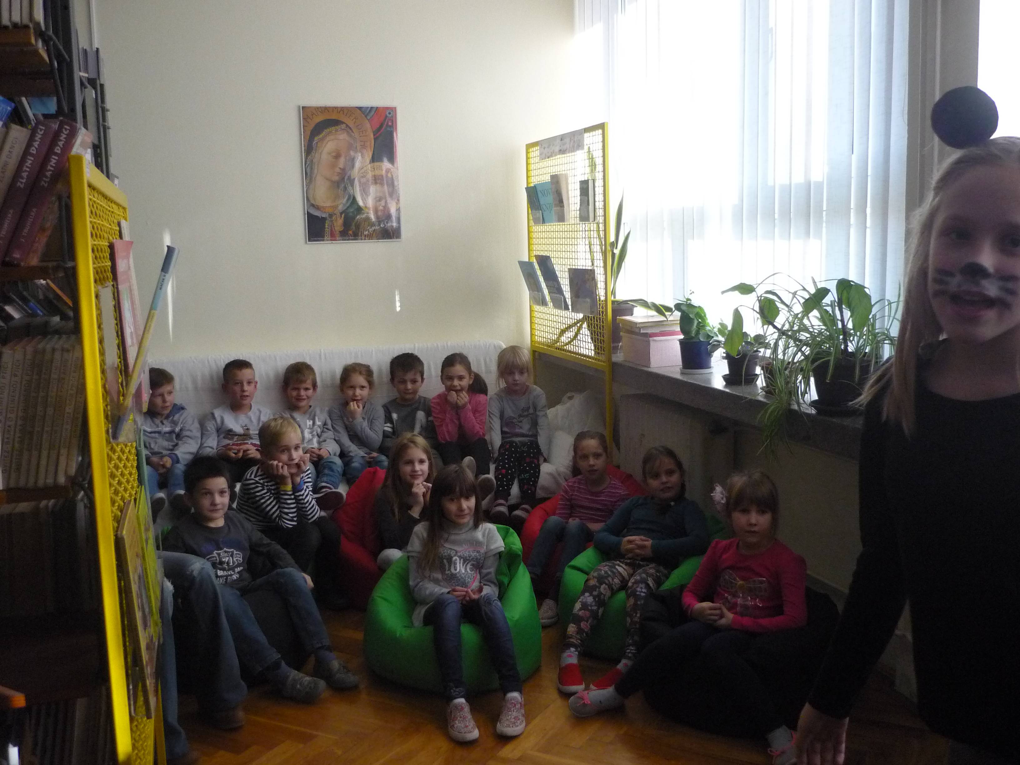 Kako bi njihov prvi službeni posjet školskoj knjižnici bio svečan i ostao im u dugom sjećanju, pobrinuli su se članovi Dramske grupe koji su s učiteljicom Vesnom Jakopović uvježbali igrokaz Miš u knjižnici. Naši novi članovi ponovili su kako treba knjige čuvati od oštećenja i upoznali se s pravilima knjižnice kao i svim pravima i obavezama koje kao članovi od sada imaju.