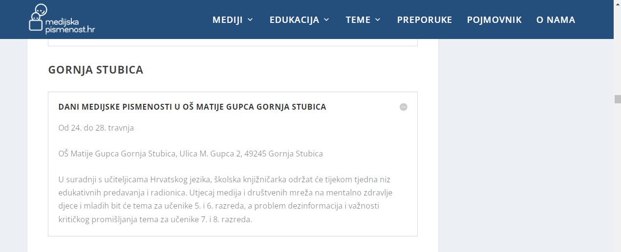 Aktivnosti su najavljene i na portalu medijskapismenost.hr.