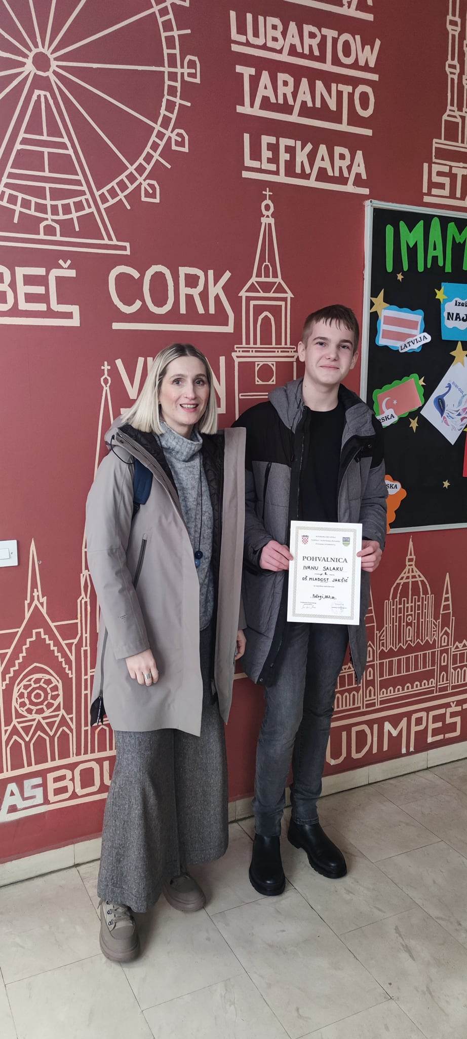 Učenici Patricia Bošnjak, Dominik Gašparović, Jan Stojčević i Ivan Salak te njihove mentorice Marija Jukić i Ivana Kuna Raguž predstavljali su 28.2.2023. našu školu na Županijskom natjecanju iz engleskoga jezika u Ekonomskoj školi u Požegi i ostvarili zapažen uspjeh. Učenici Dominik Gašparović (7.r) i Ivan Salak (8.r) ostvarili su rezultat kojim se plasiraju na državnu razinu. Bravo natjecateljima!