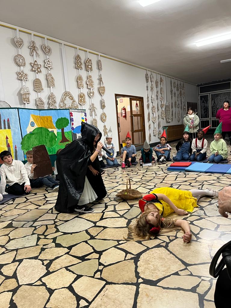 U našoj školi 6.12.2023. učenici produženog boravka 3a/b razreda u sklopu projekta Putovanje u svijet bajki izveli su predstavu Snjeguljica i sedam patuljka pred najužim članovima obitelji. Učenici su od početka nastavne godine marljivo i rado vježbali, a vodila ih je učiteljica Iva Drlić.