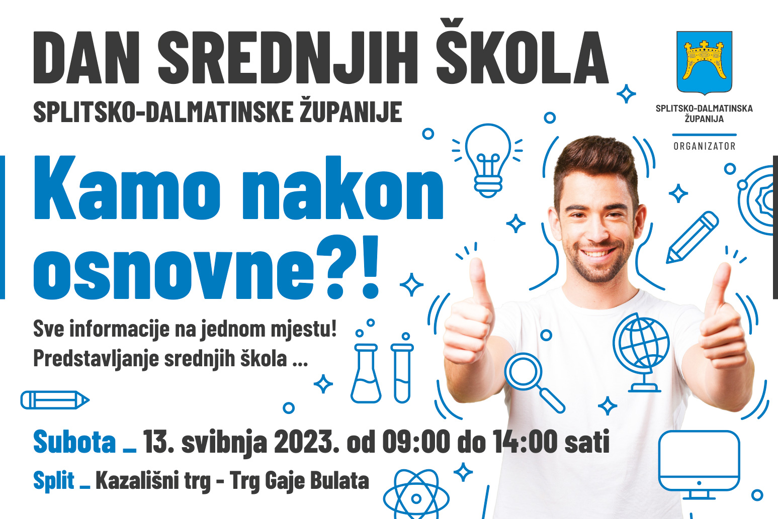 Zahvaljujemo Vam na suradnji, veselimo se susretu na "Danu srednjih škola Splitsko-dalmatinske županije", u subotu, 13. svibnja 2023. od 9 do 14 sati.