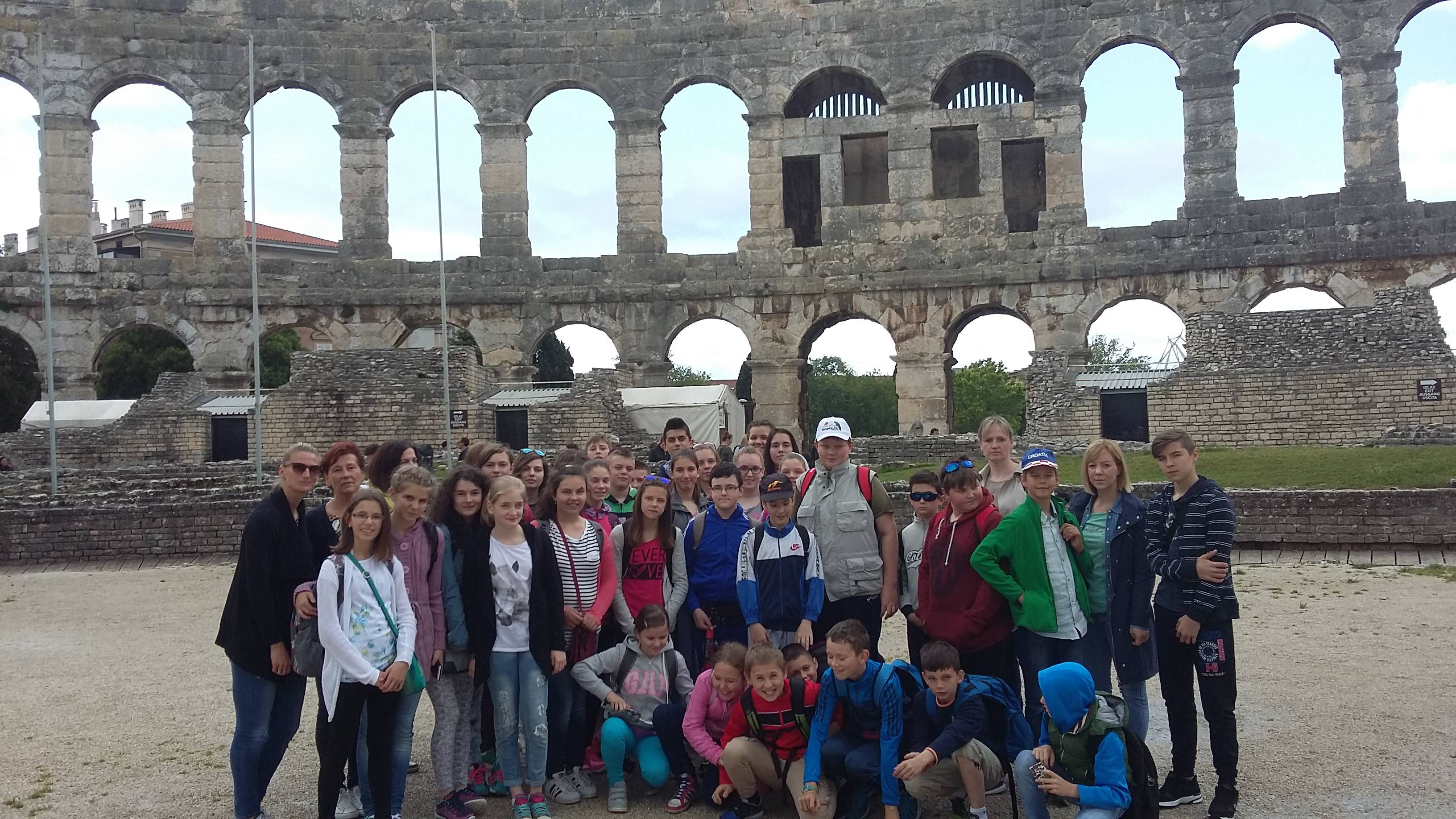 Najprije smo obišli Pulu gdje smo posjetili Arenu, najpoznatiji pulski simbol i jedan od najbolje očuvanih rimskih amfiteatara na svijetu, zatim smo prošetali do Slavoluka Sergijevaca, poznat i pod nazivom Zlatna vrata.