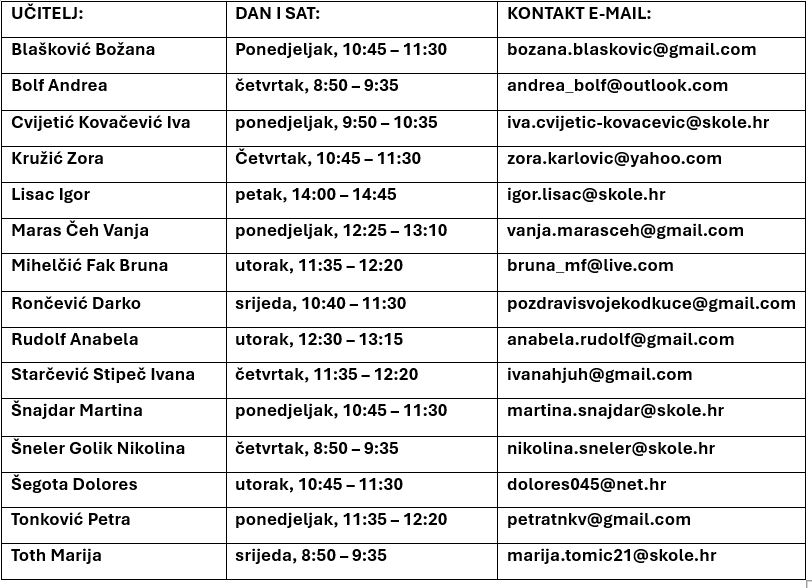 Molimo Vas da se prije dolaska na informacije (barem jedan radni dan) javite e - mailom predmetnom učitelju.