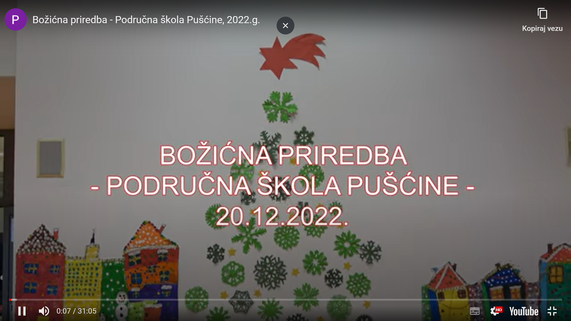 Nakon dulje stanke uèenici i uèiteljice podruène škole Pušæine jedva su èekali ponovno uprilièiti bo¾iænu priredbu. U utorak, 20. prosinca u 17 sati sa zadovoljstvom su u svoju školu pozvali roditelje, bake, djedove, uèitelje i sve zainteresirane kako bi im se predstavili pjesmom, glumom i recitacijama i tako doèarali ljepotu i toplinu blagdana Bo¾iæa koji je pred nama.