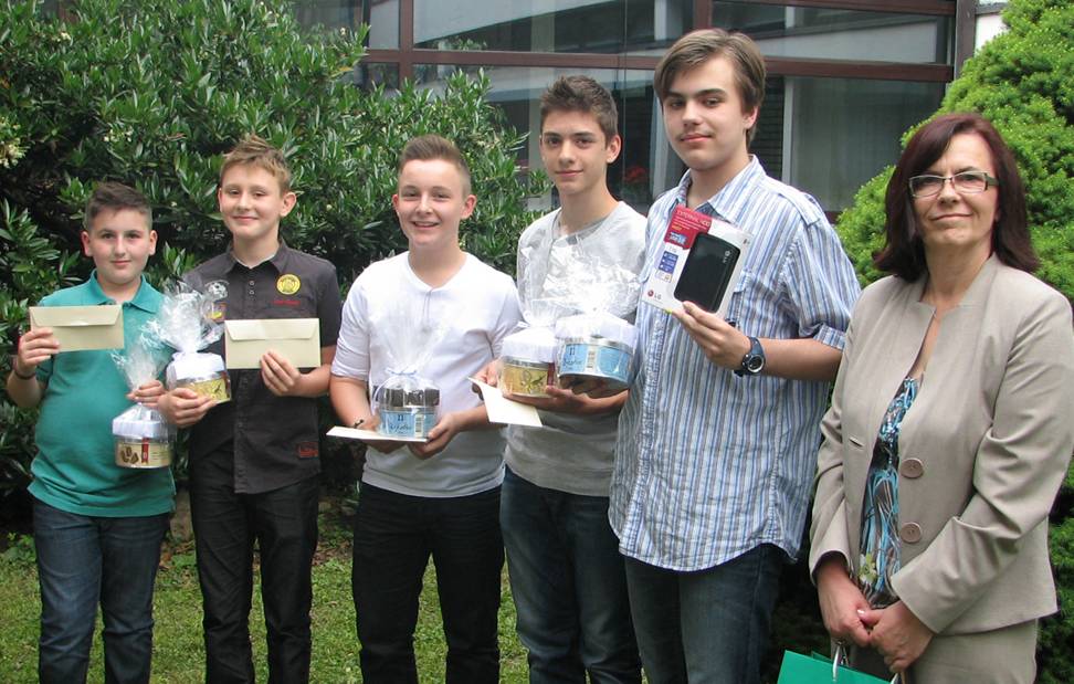 Zagrebačka županija i T-com za osvojena prva tri mjesta učenicima i njihovim mentorima na primanju za učenike osnovnih i srednjih škola Zagrebačke županije u Jastrebarskom 5. lipnja 2012. godine, uručila je vrijedne materijalne nagrade.