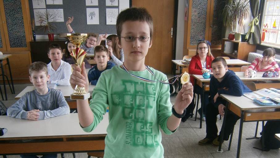 U subotu, 22.3 2014. na 3. memorijalnom turniru „Igor Malek“ u Sisku, Mateo Graonić, učenik 4.a razreda naše Škole, osvojio je zlatnu medalju u natjecanju iz karatea. To mu je ujedno i prva osvojena medalja pa je zbog toga posebno zadovoljan. Karate klub Centar, čiji je član i Mateo, ukupno je osvojio 22 medalje: 5 zlatnih, 5 srebrenih i 12 brončanih. Čestitamo! |